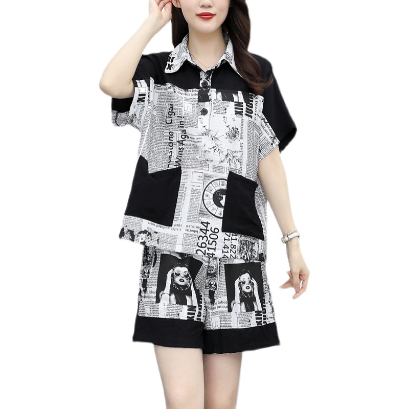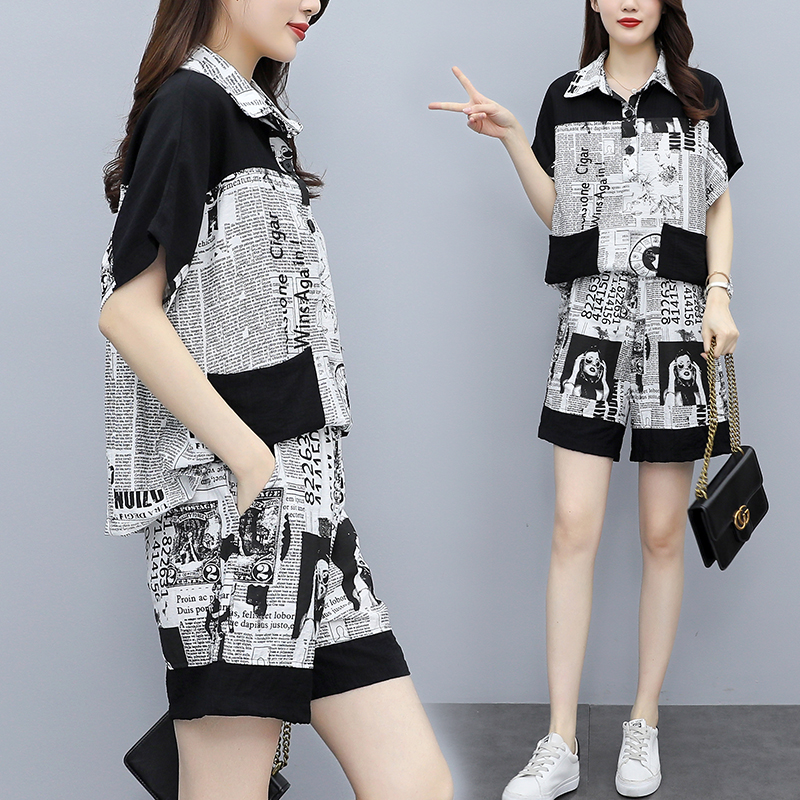 2025夏季新款时尚显瘦短袖短裤大码女装休闲运动胖妹妹两件套套装