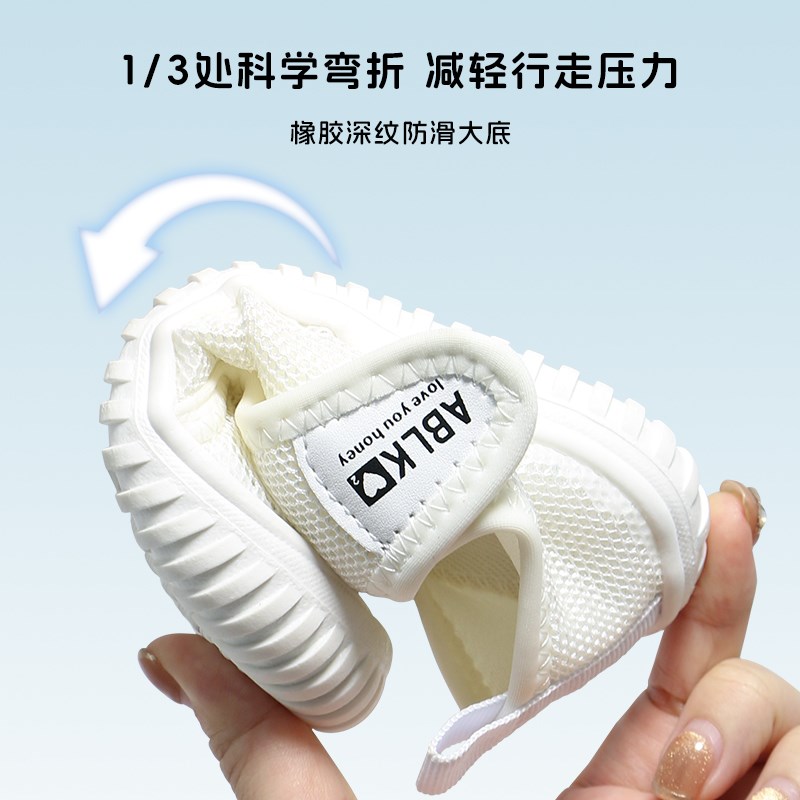 春夏幼儿园室内鞋女宝宝小白鞋男B童软底透气网面地板鞋儿童帆布