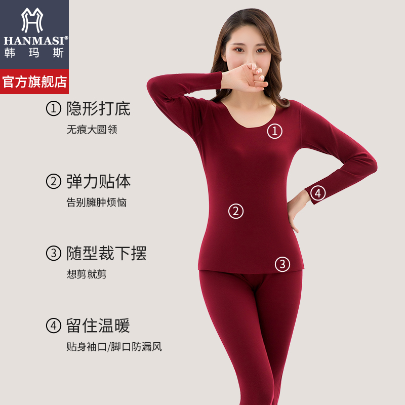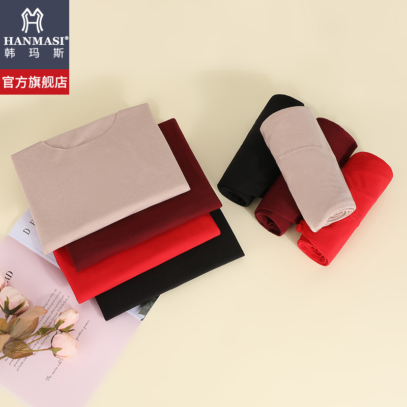 韩玛斯保暖内衣女德绒无痕加绒修身中厚随身裁秋衣秋裤套装H12610