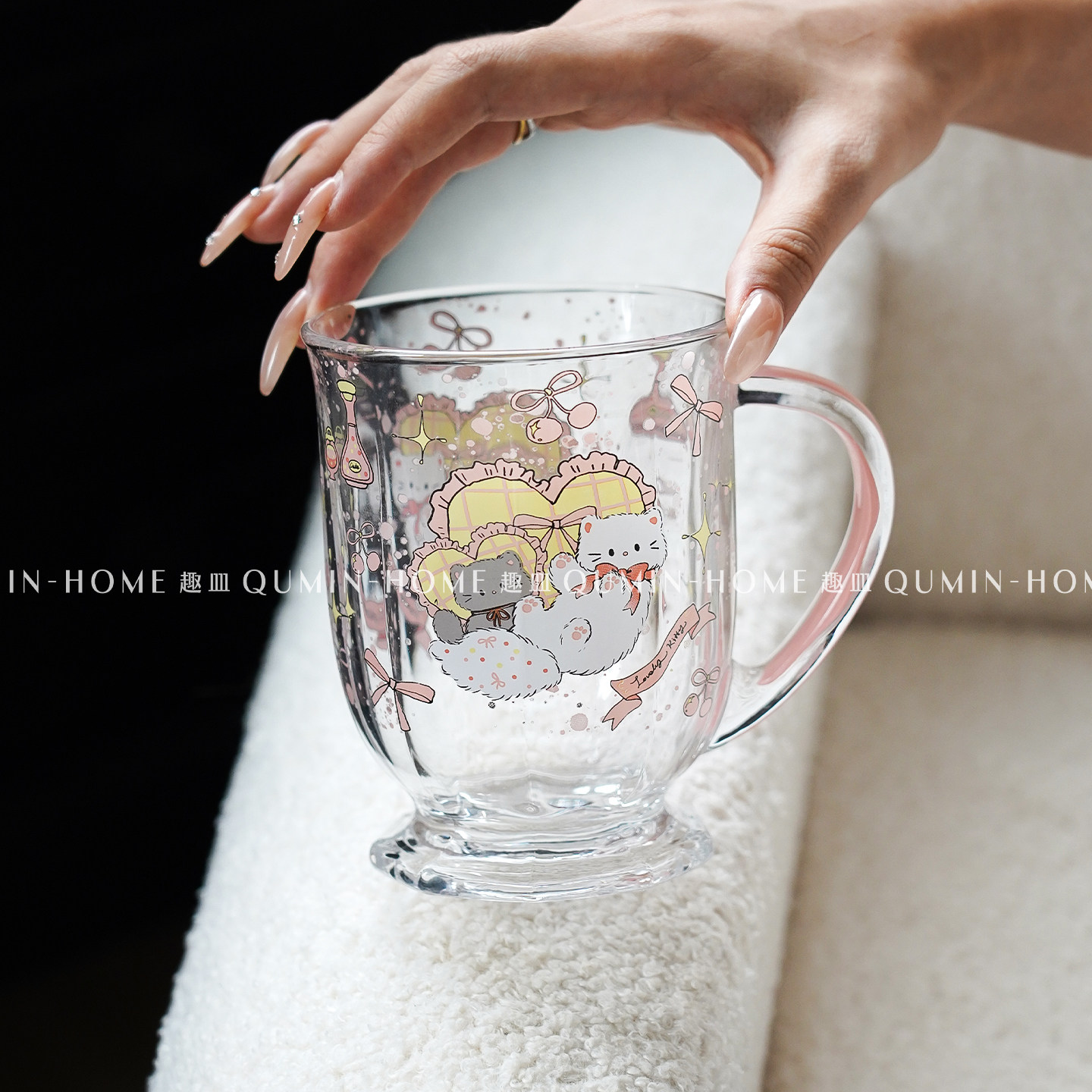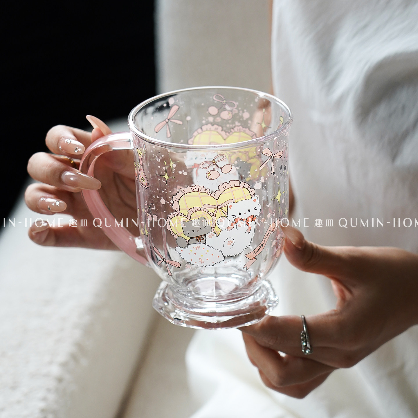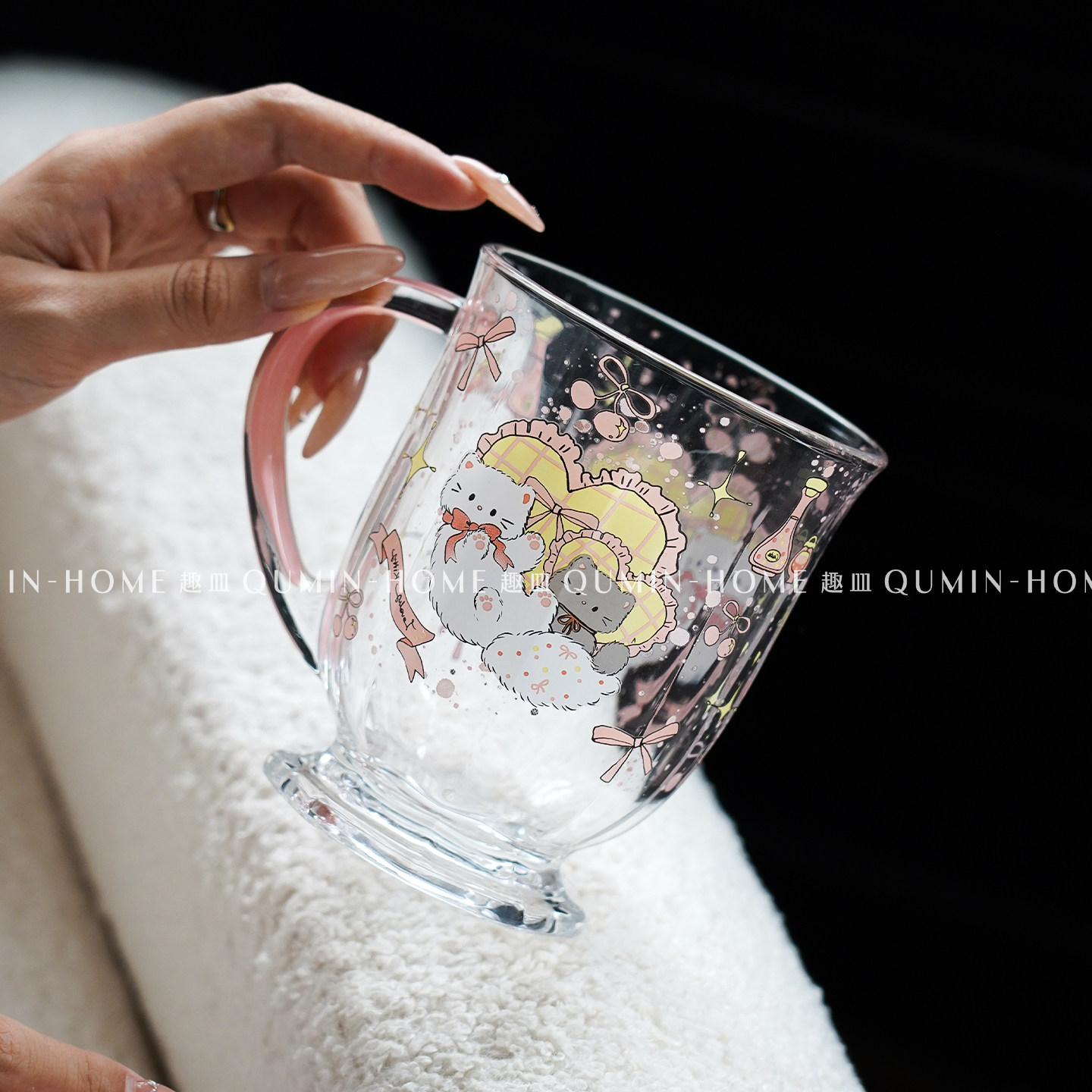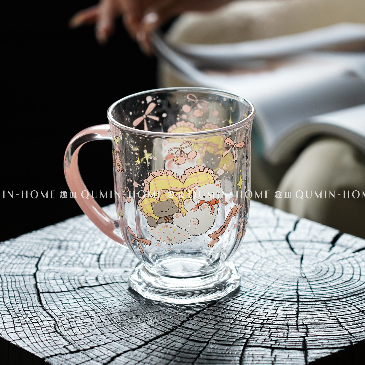 趣皿可爱卡通玻璃杯带把手大容量水杯子办公室早餐杯饮品杯奶茶杯