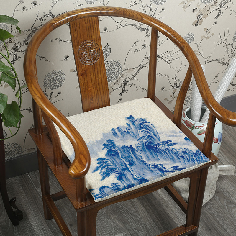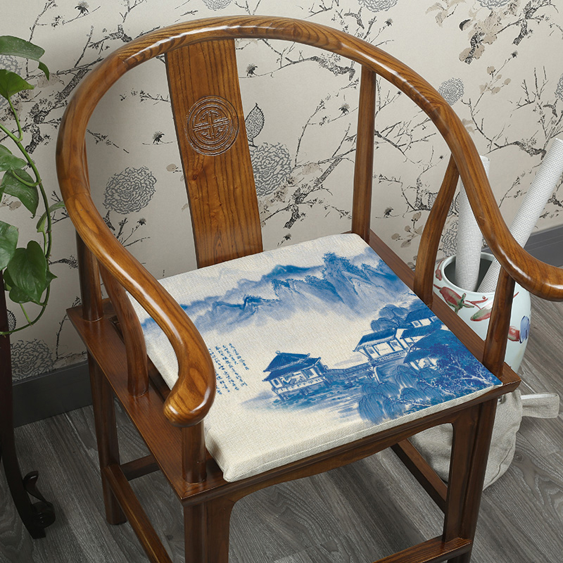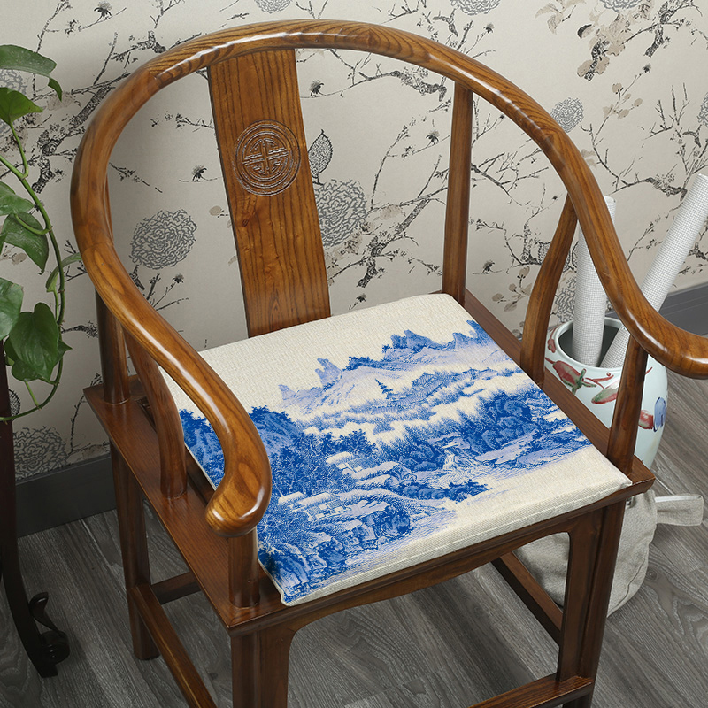 青花瓷中式坐垫明清古典红木沙发椅垫加厚实木圈椅子X垫办公室定