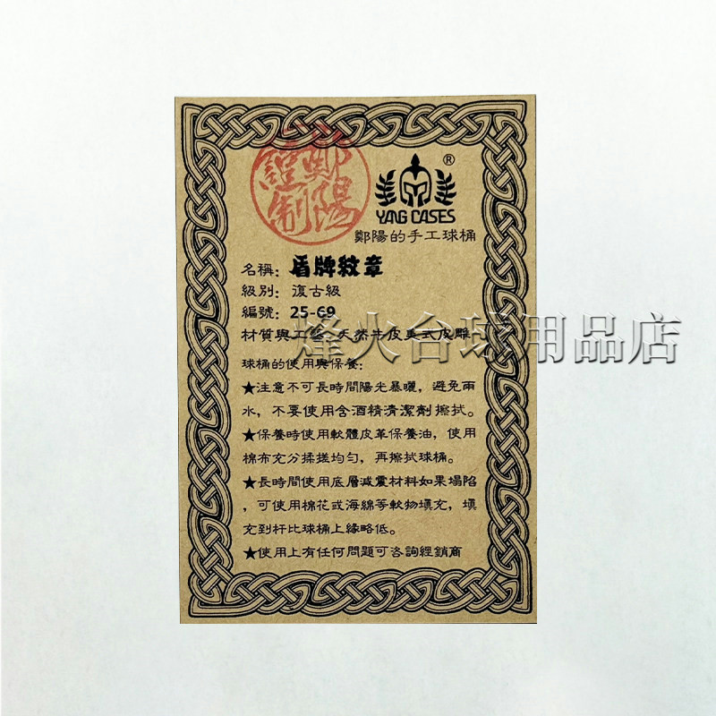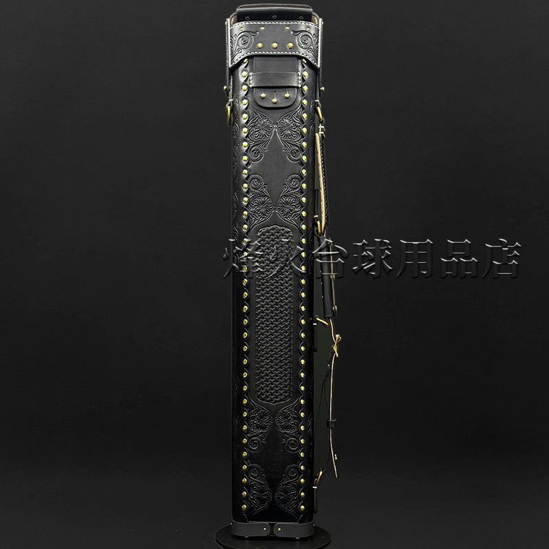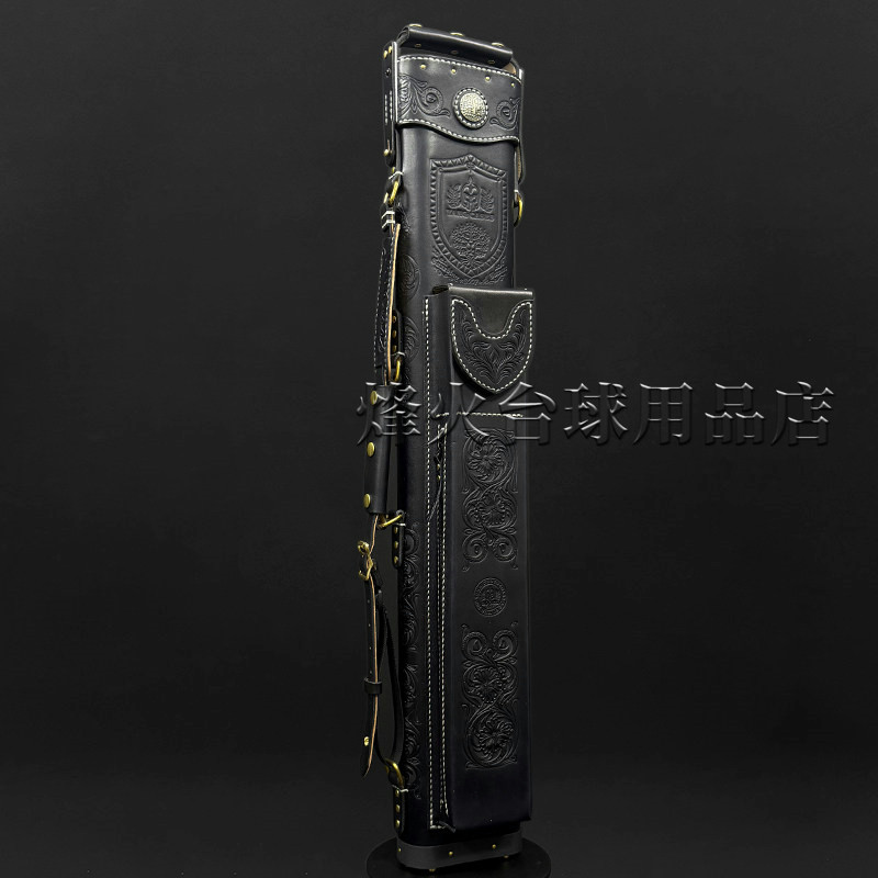 郑阳手制盾徽纹章台球七孔杆桶大头杆九球杆筒真皮雕刻大头杆桶