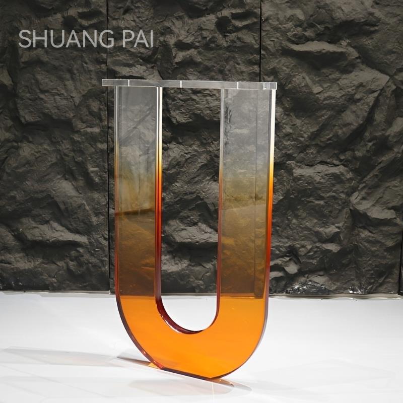 彩色渐变亚克力桌腿支架支撑板导台茶几书桌透明悬浮桌脚加工定制