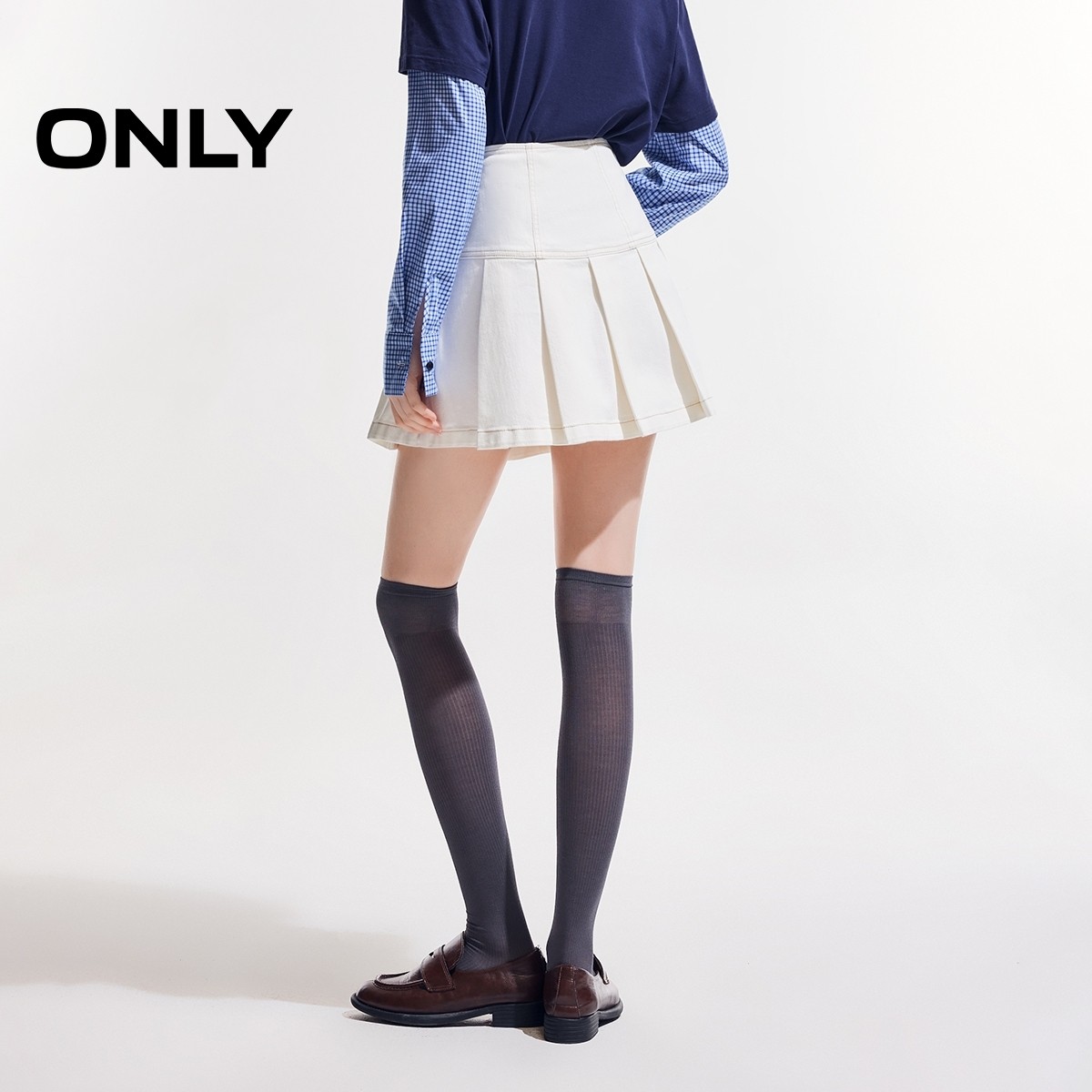 绫致ONLY2025夏季新款时尚甜美高腰短裙百褶裙牛仔半身裙女