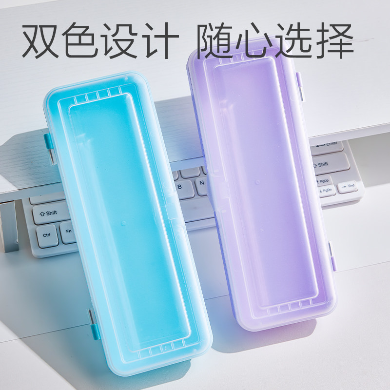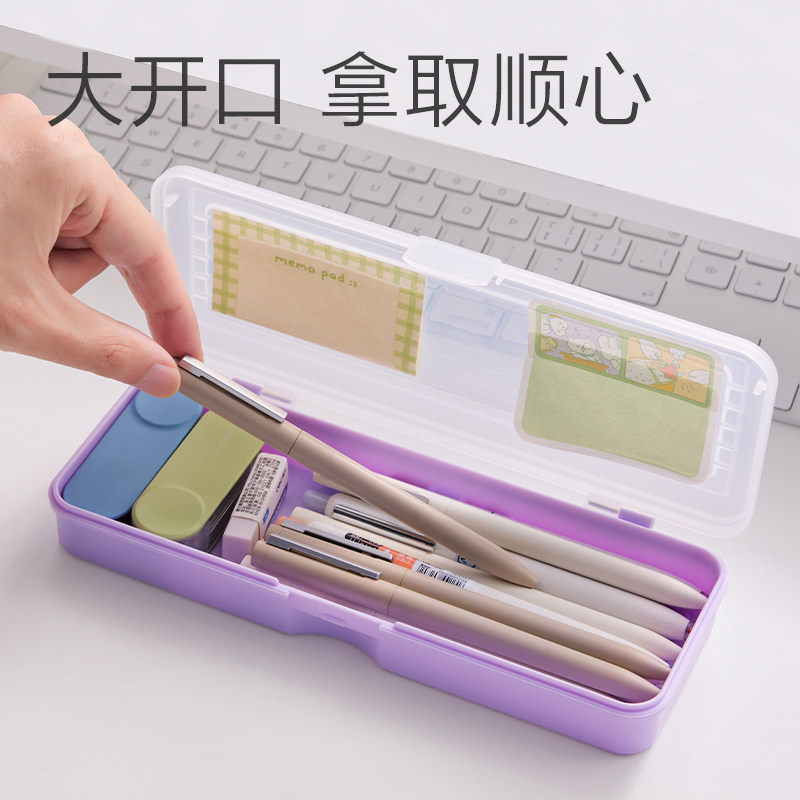 得力半透明铅笔盒简约笔盒磨砂PP塑料收纳学生文具盒大容量多功能文具盒铅笔盒文具收纳盒儿童女生初中小学生
