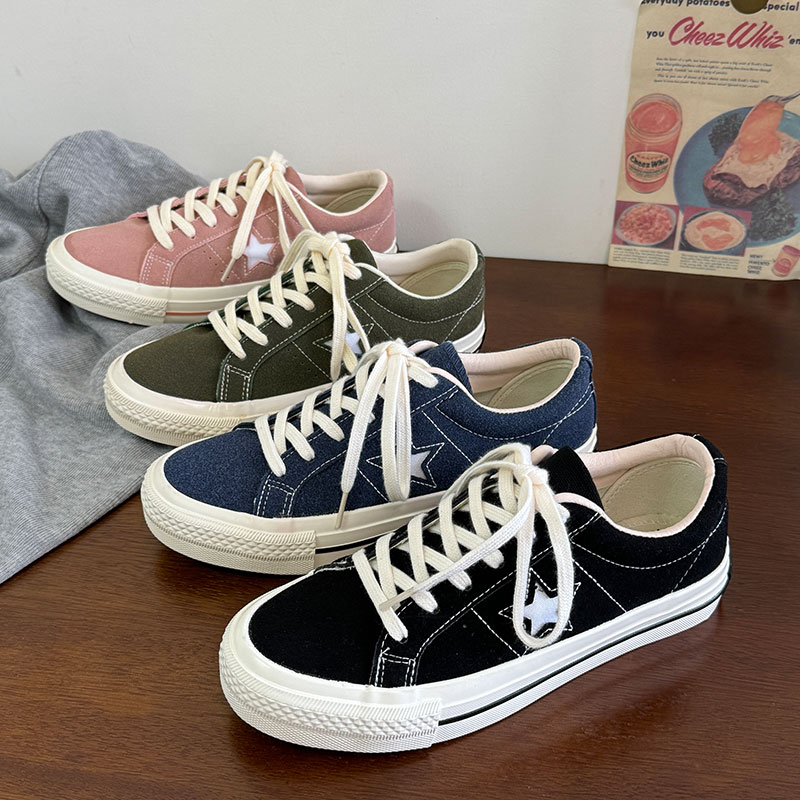 黑色低帮男女同款情侣款港风学院新款百搭平底时尚潮流系带休闲鞋
