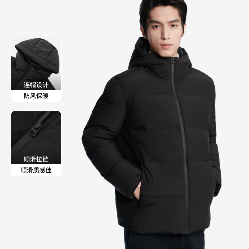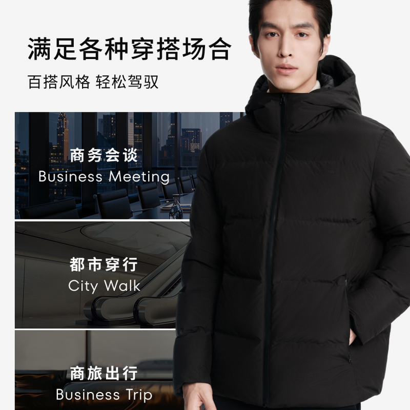 【石墨烯蓄热】劲霸男装短版商务时尚休闲连帽茄克羽绒服