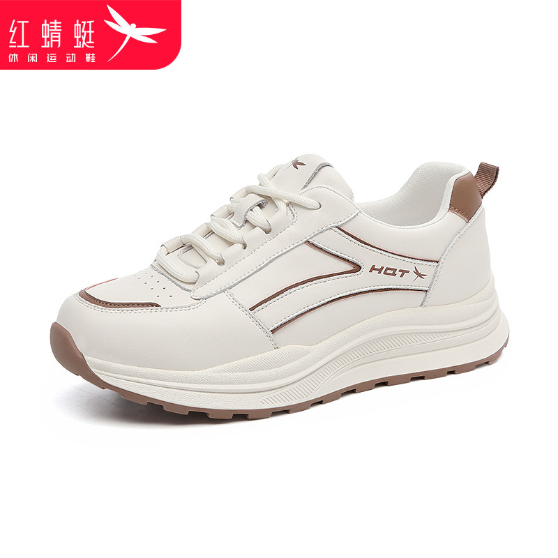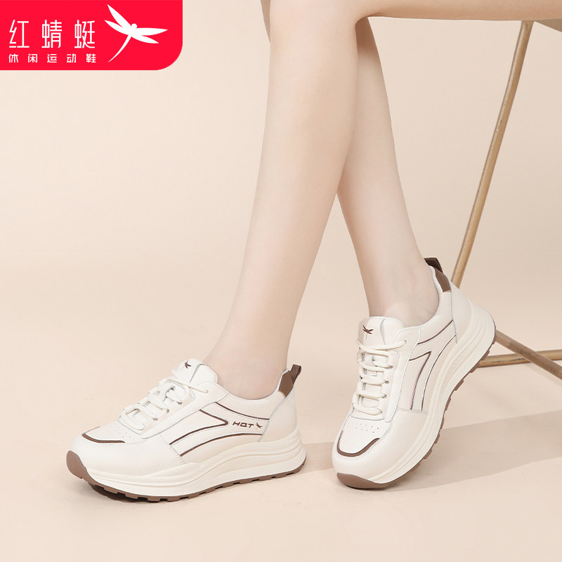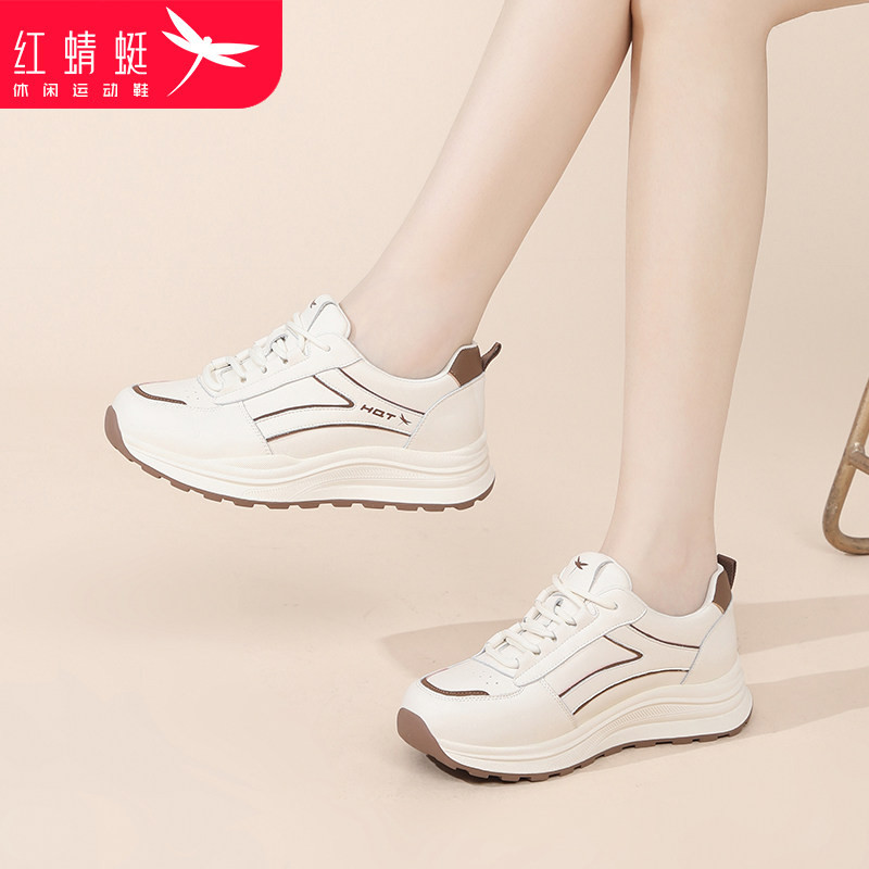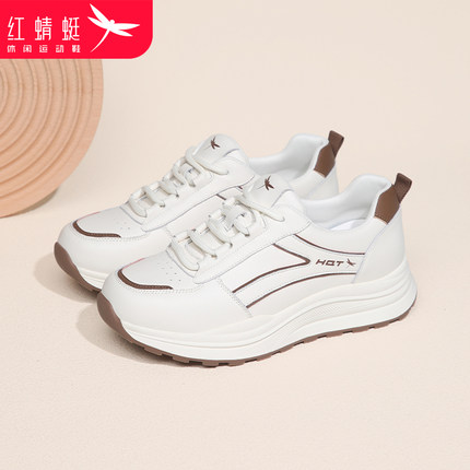 红蜻蜓女鞋休闲运动鞋秋冬新款皮面厚底百搭老爹鞋大码保暖小白鞋