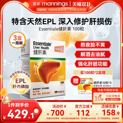 万宁ESSENTIALE德国进口健肝素胶囊护肝片解酒熬夜养肝片蓟类100