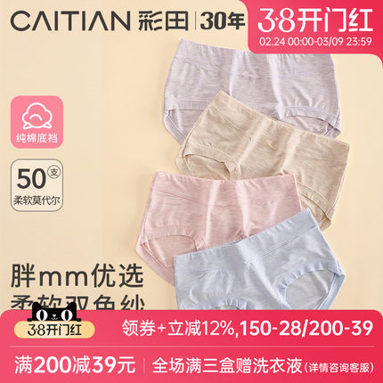 彩田内裤女士正品中高腰大码莫代尔亲肤透气宽档包臀小平角内裤女