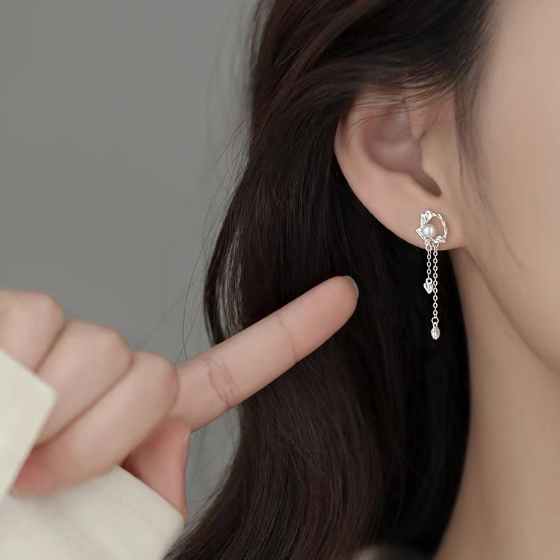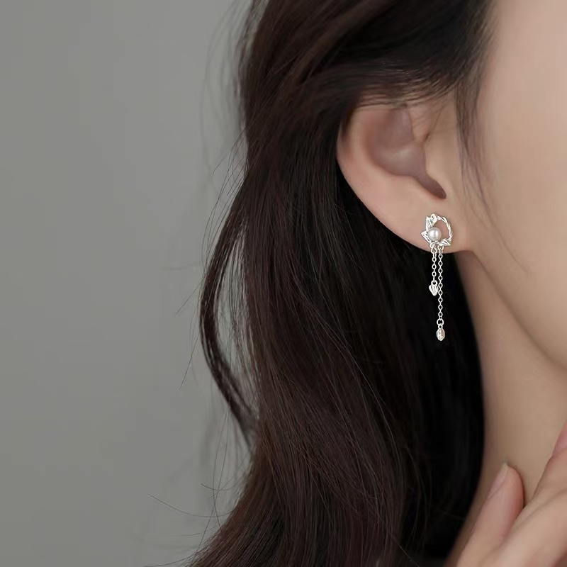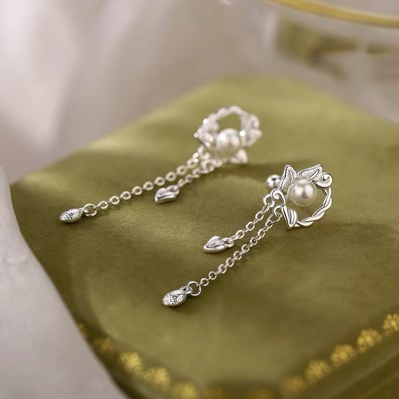 925纯银针藤蔓流苏耳钉轻奢高级2024新爆款珍珠耳环女耳饰