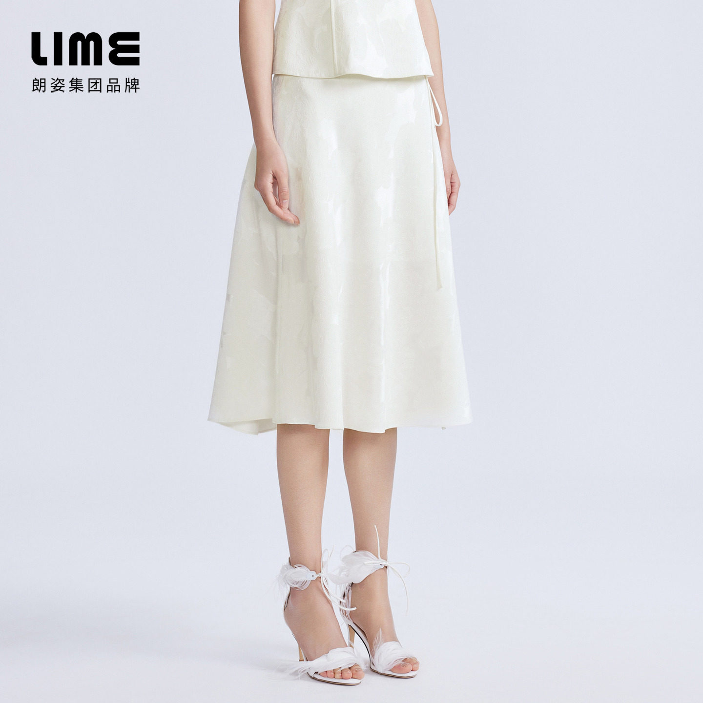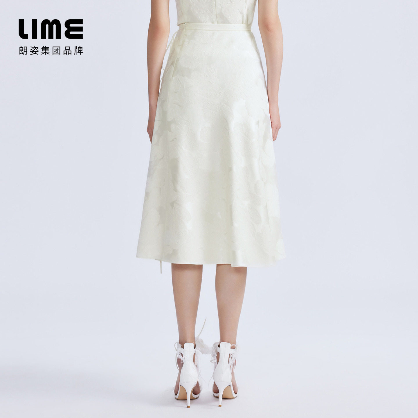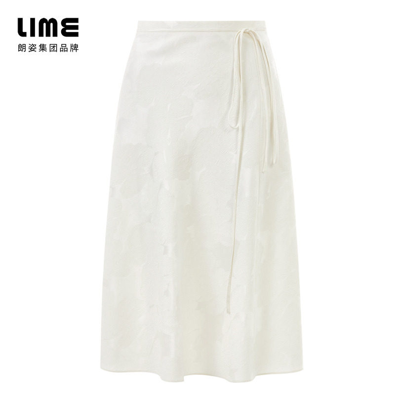 LIME莱茵新中式半裙白色2024春夏国风大裙摆简约高腰伞裙半身裙