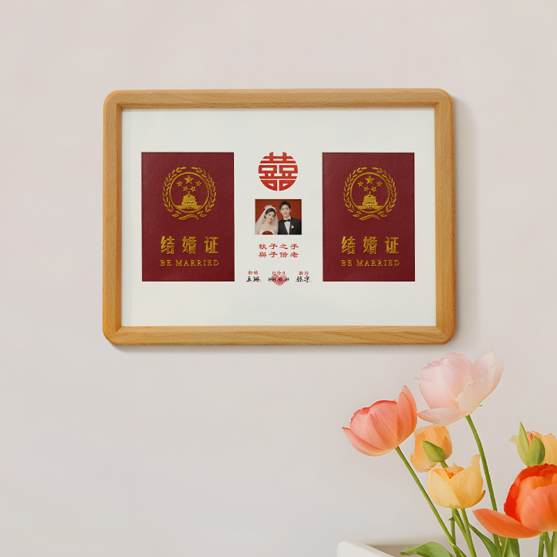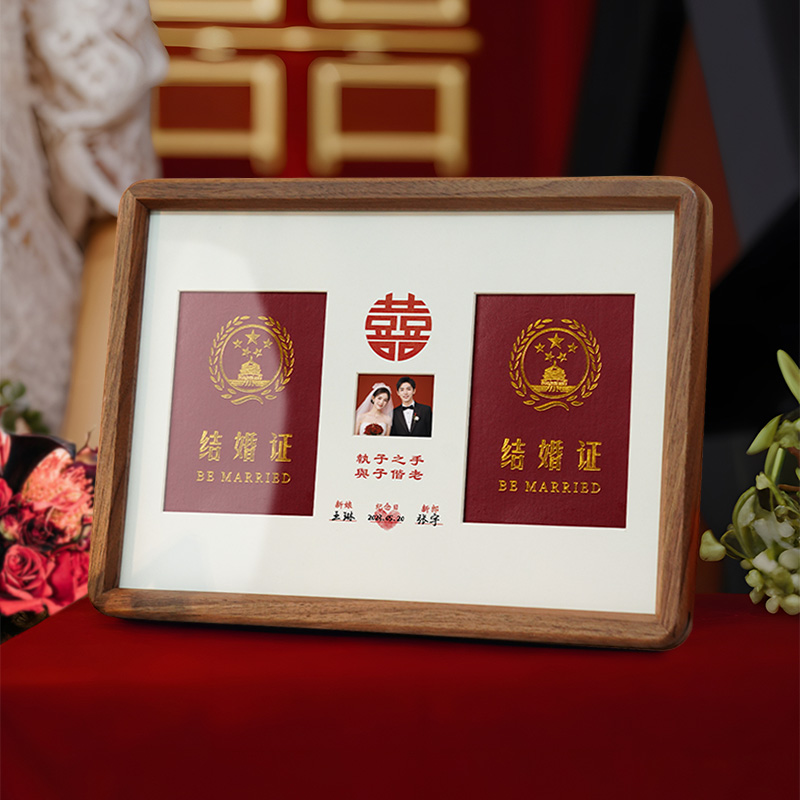 结婚纪念日相框收纳新婚登记照领证周年纪念摆台高级实木创意礼物