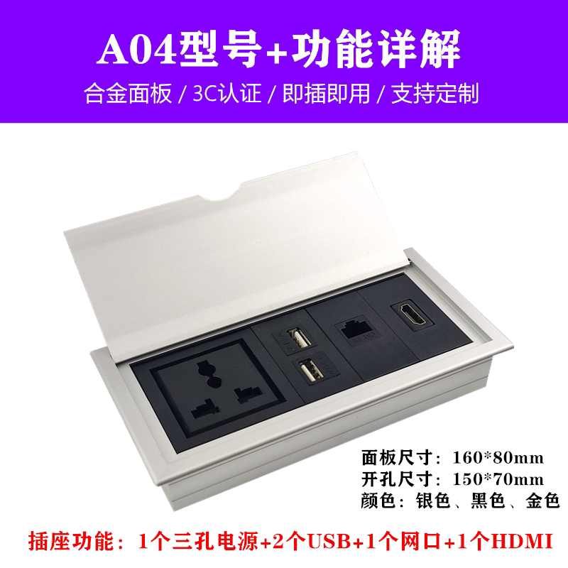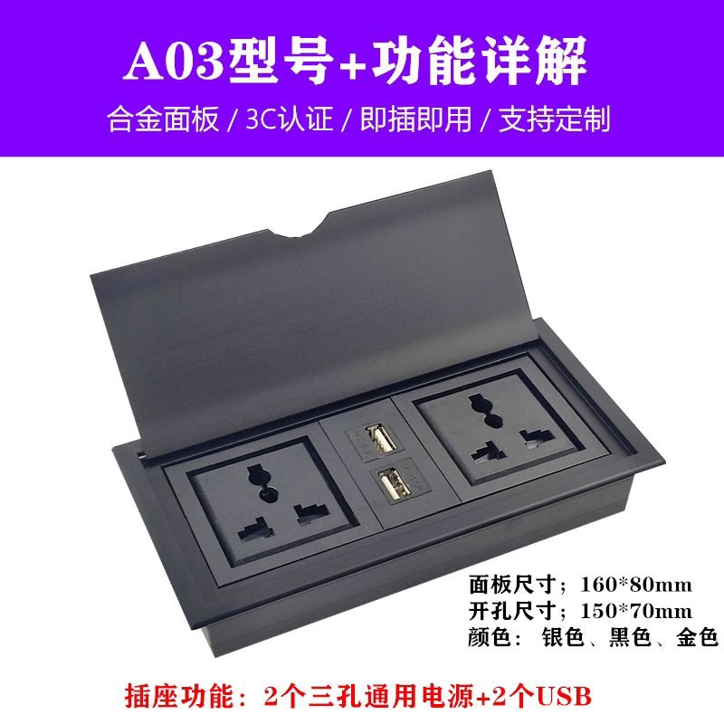 嵌入式桌面插座翻盖内嵌式排插多媒体插座办公桌隐藏式USB接线板