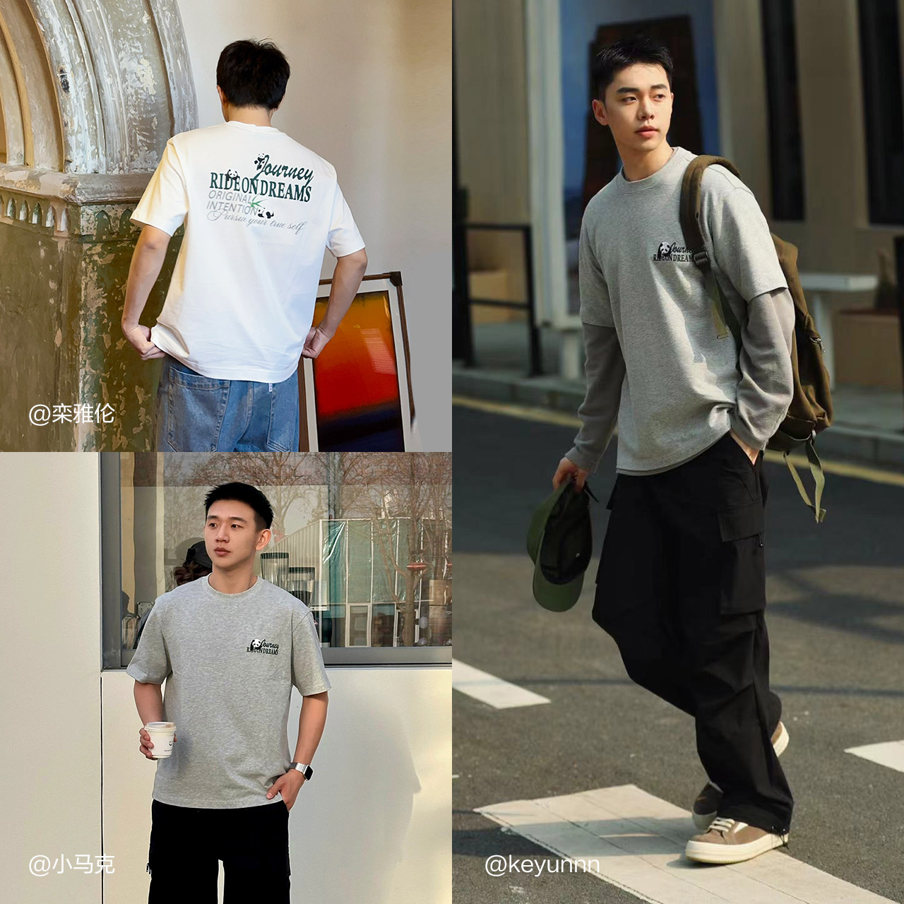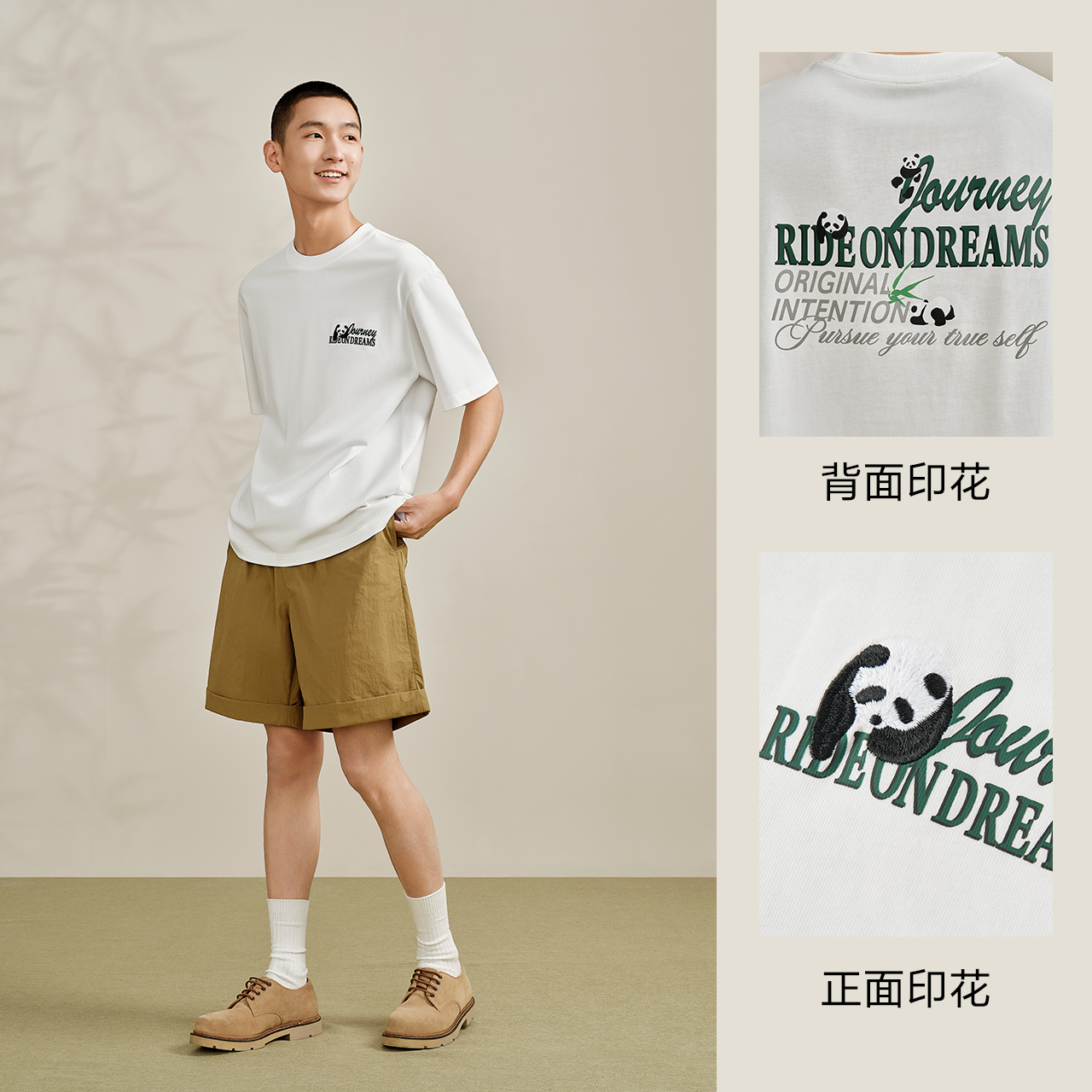 森马观园吉联名短袖T恤男2024夏季新款时尚刺绣字母印花上衣纯棉