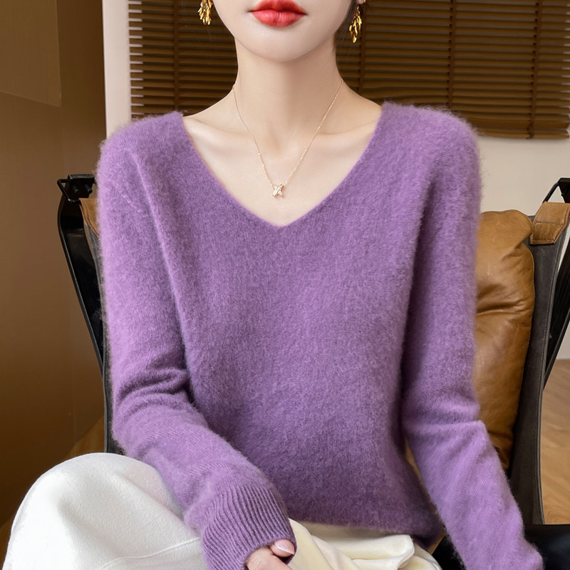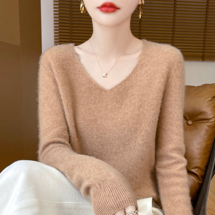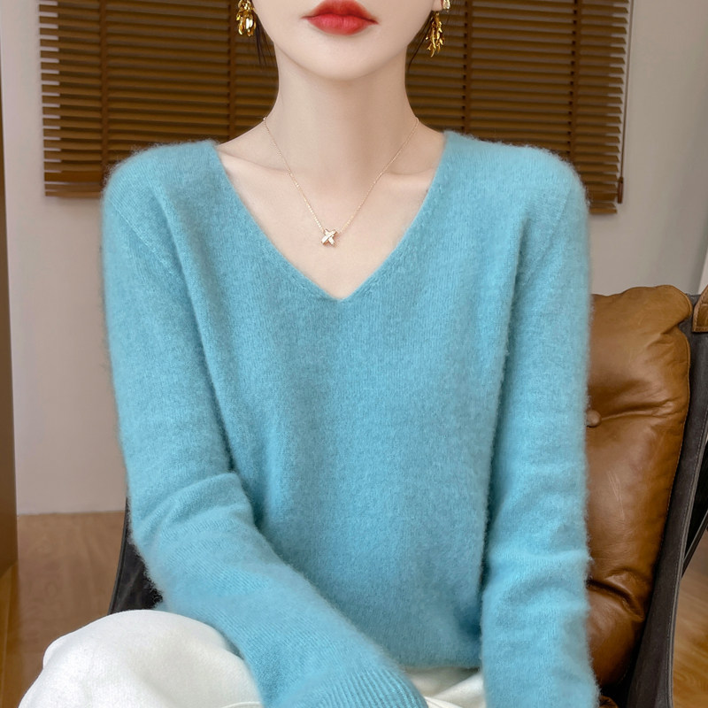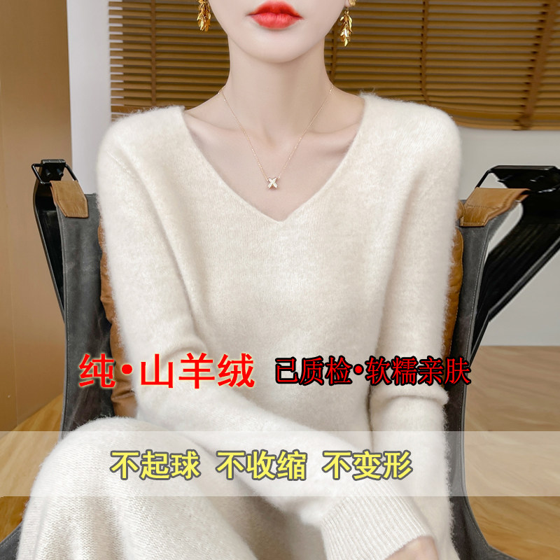 鄂尔多斯市一线成衣无缝羊绒衫女针织打底衫女V领薄款毛衣打底衫