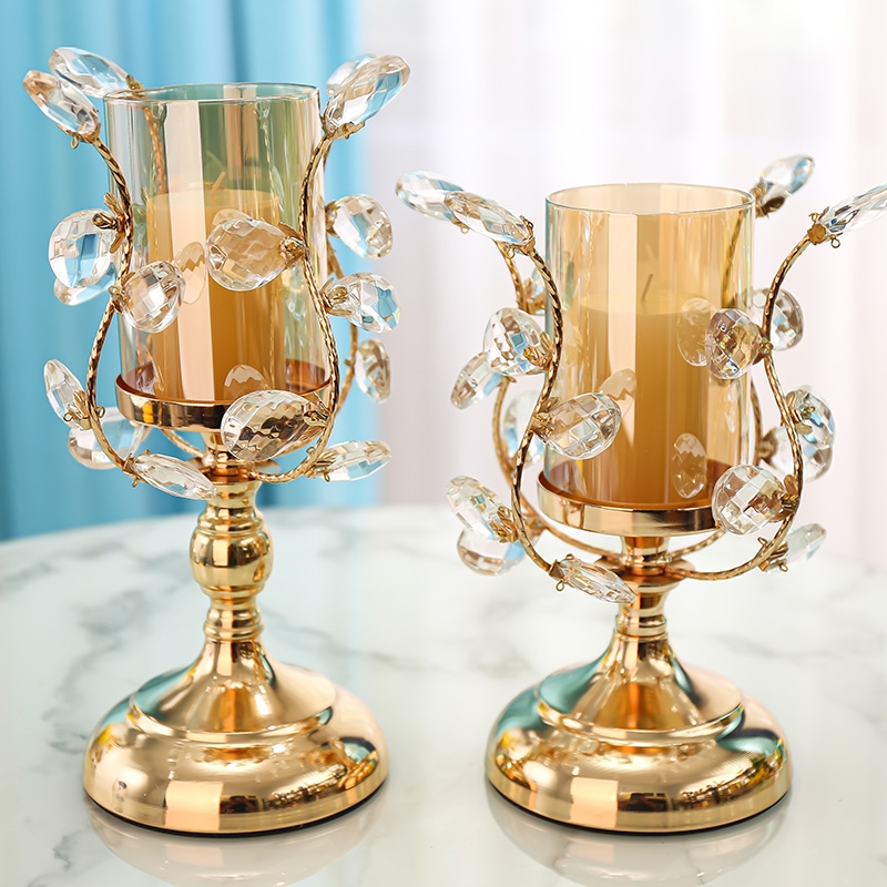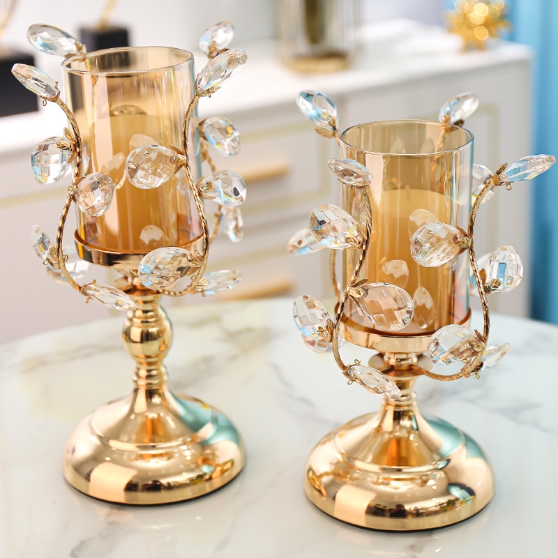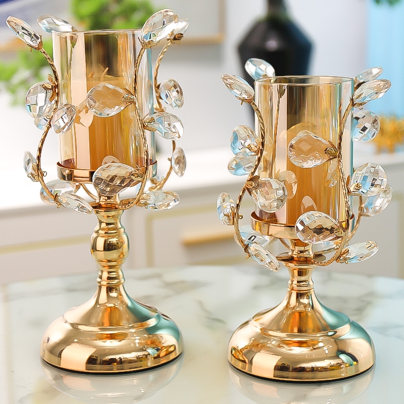 轻奢金色水晶玻璃蜡烛台 简约欧式玻璃浪漫餐桌烛光晚餐道具摆件