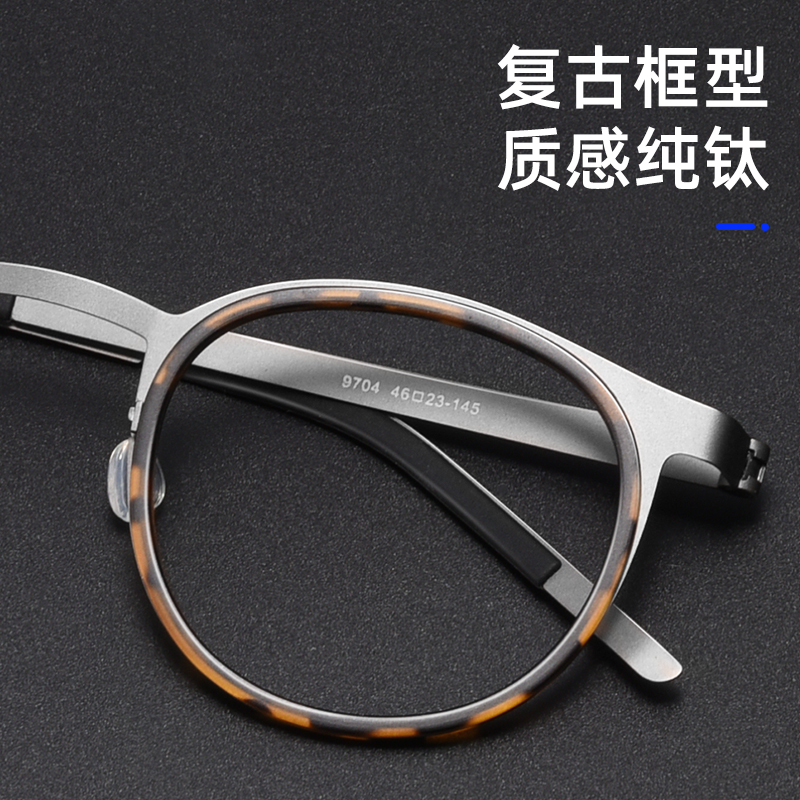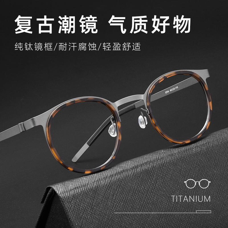 姜文同款超轻纯钛眼镜框男款近视可配镜片日系复古小圆框眼睛镜架