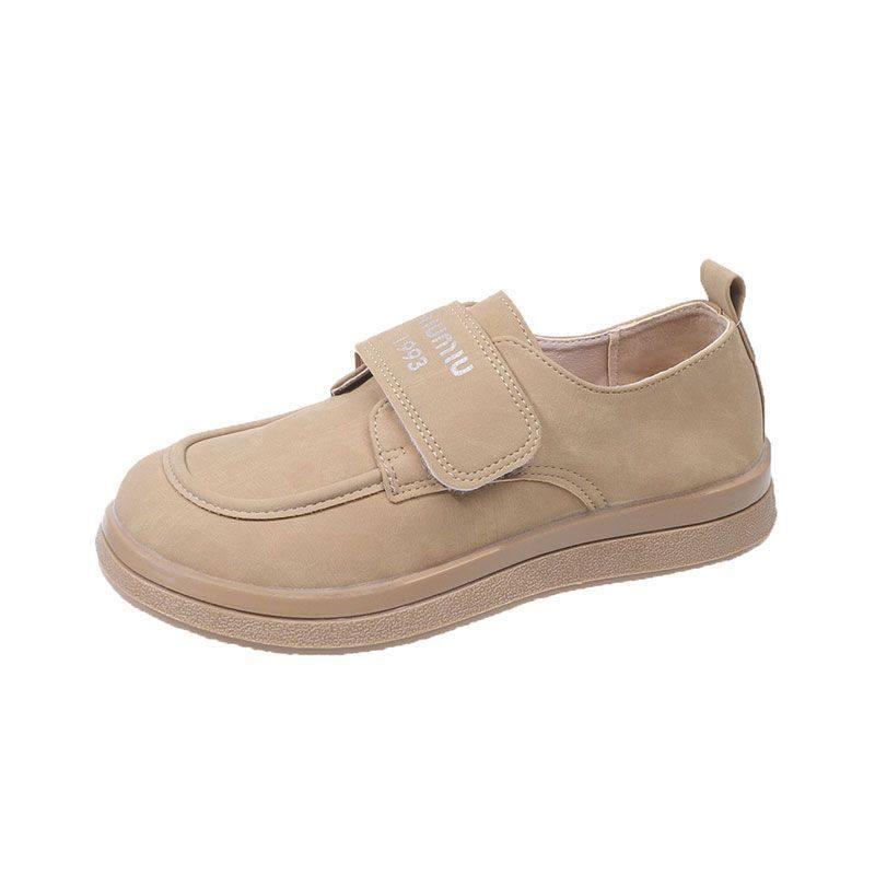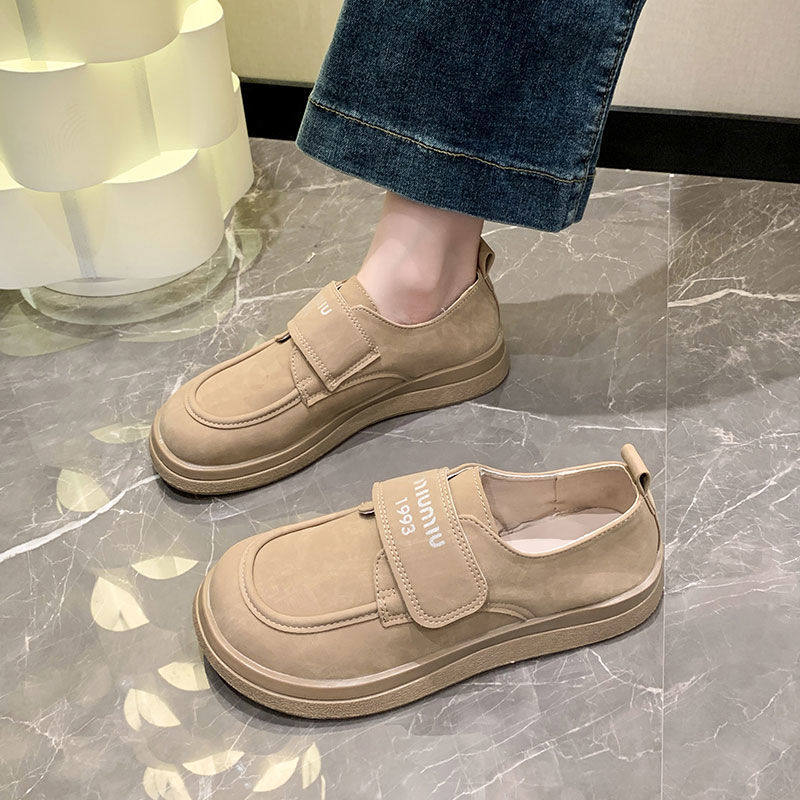 进口平跟勃肯鞋女2025春季英伦风圆头百搭小皮鞋一脚蹬魔术贴单