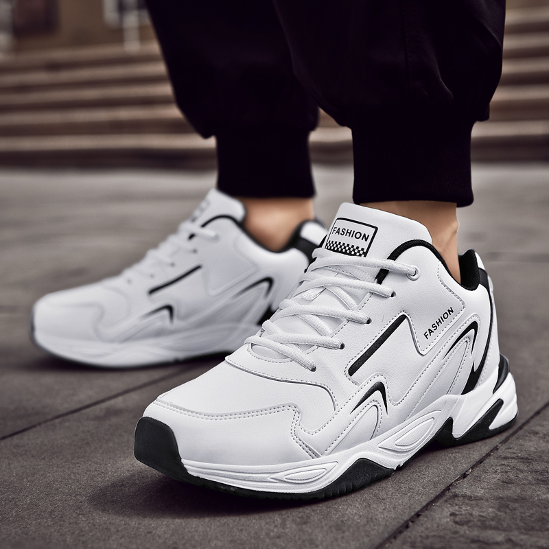 秋冬季男鞋45特大码运动鞋46加宽47加肥48旅游鞋皮面黑色跑步鞋49