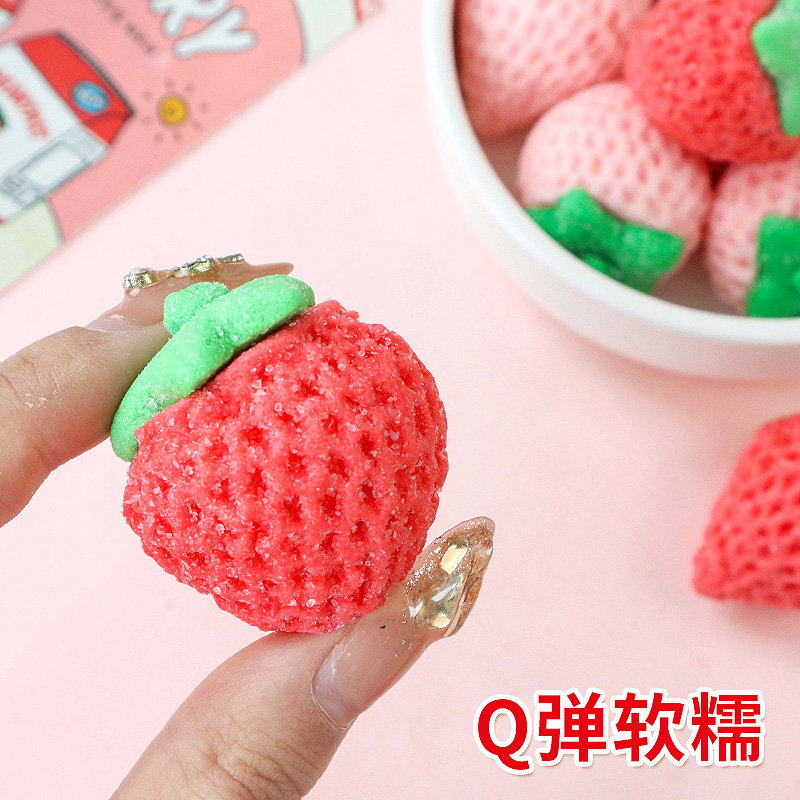 草莓棉花糖蛋糕装饰3D立体卡通糖果红色草莓软糖可食用甜品烘焙z