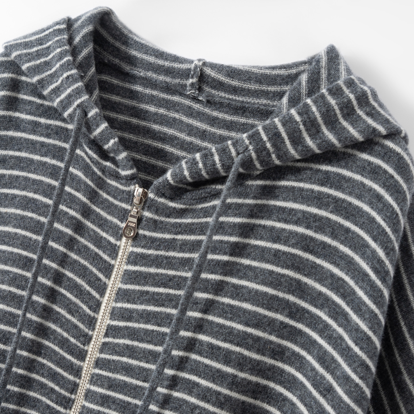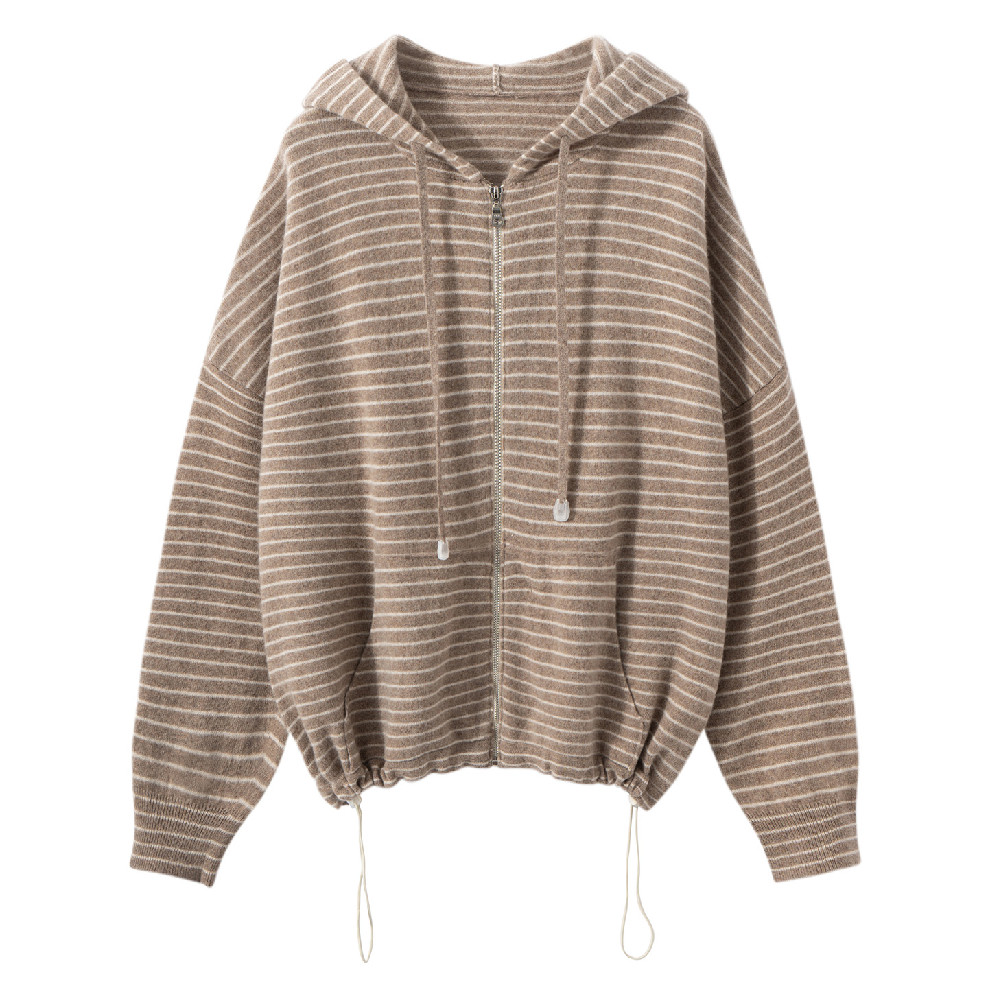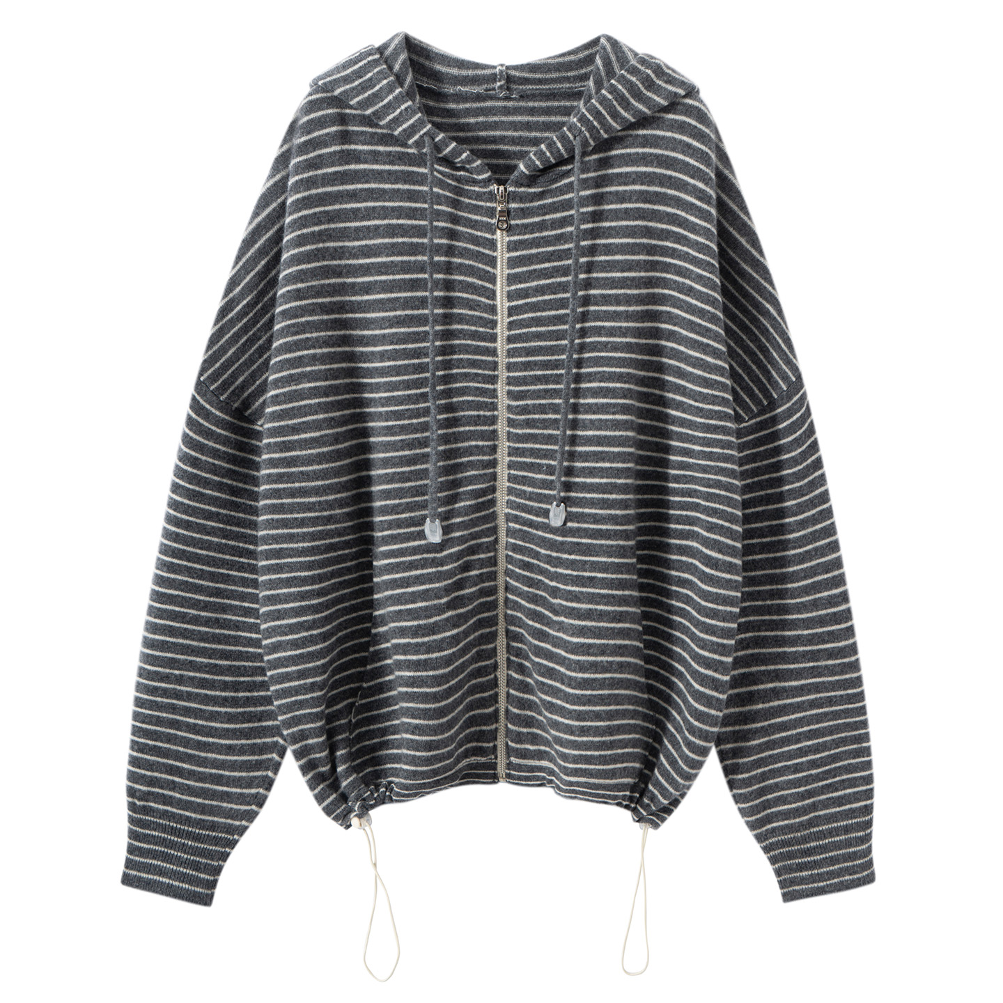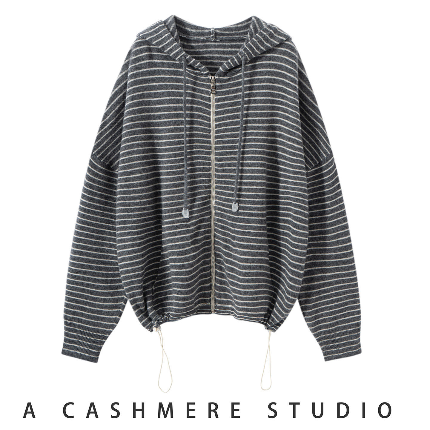 2025年秋冬新款连帽拉链纯羊毛针织开衫女宽松显瘦百搭毛衣外套