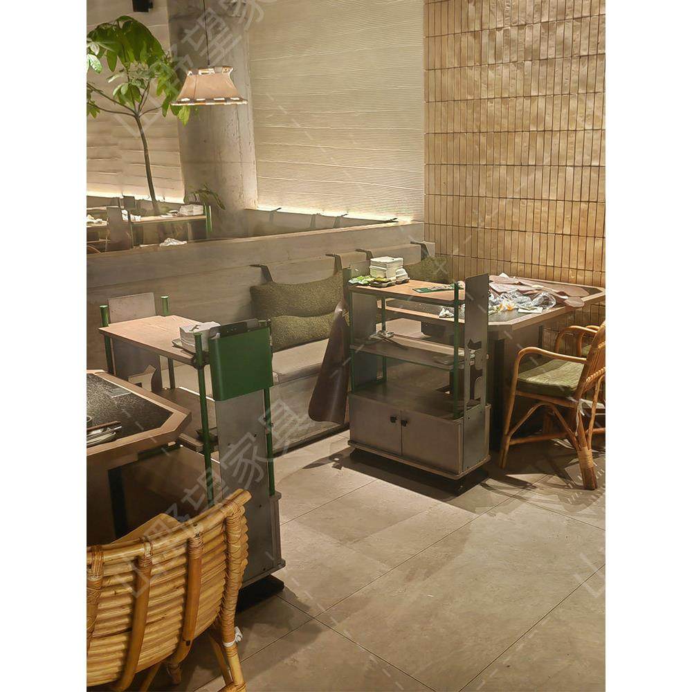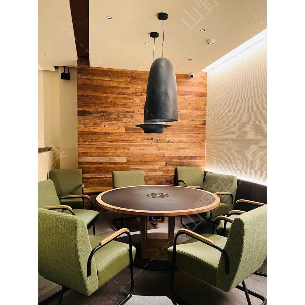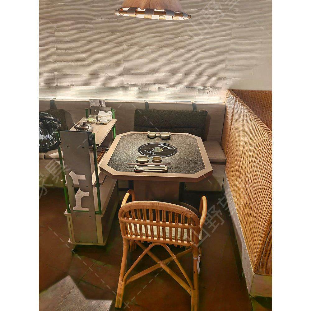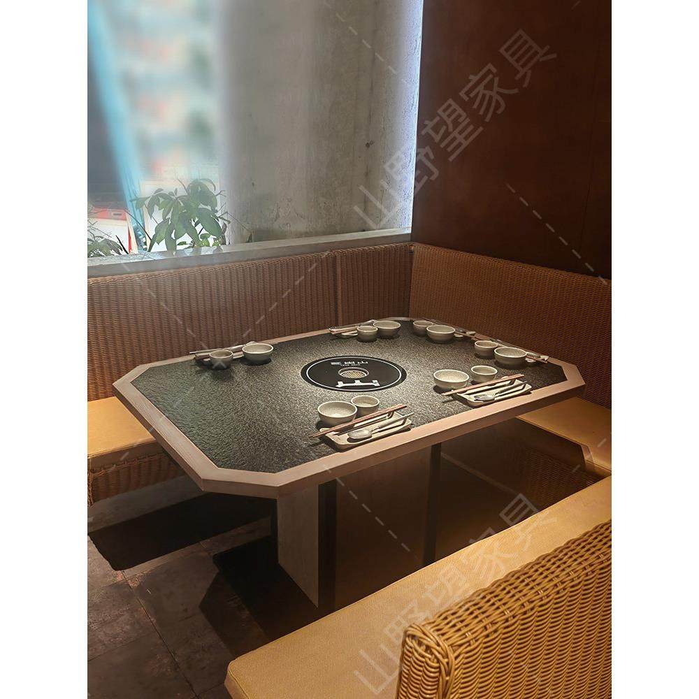山野风系三出山无烟火锅桌烤肉桌中餐火烧石桌子餐厅桌椅组合商用