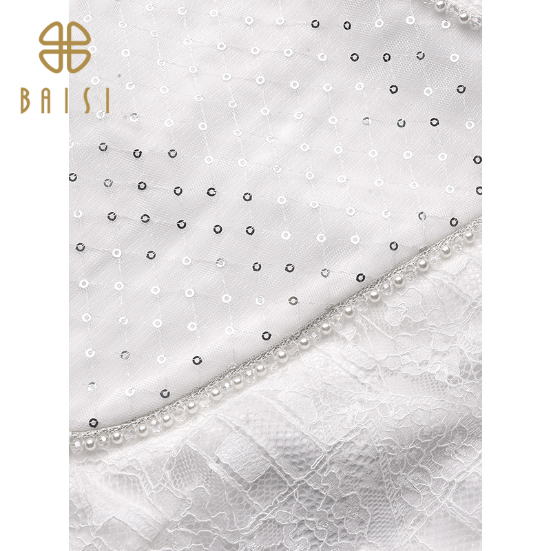 2025夏季新品百丝短袖中长裙名媛雪纺白色精致收腰修身连衣裙女