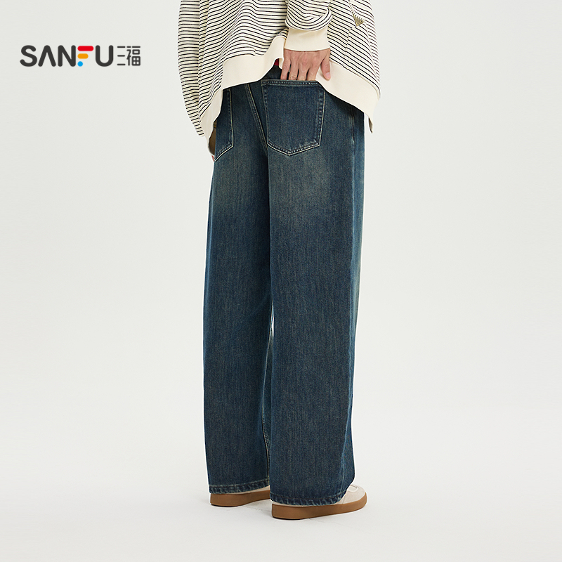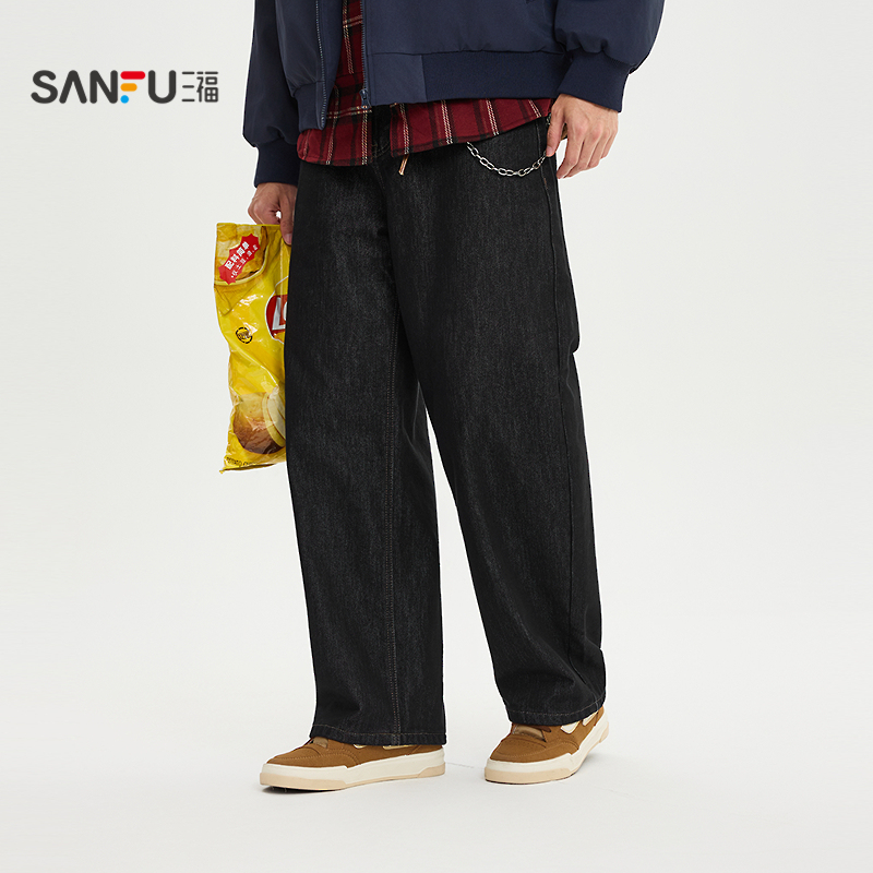 三福2025冬季男士可拆装饰挂件弯刀牛仔裤 休闲时尚裤子512577