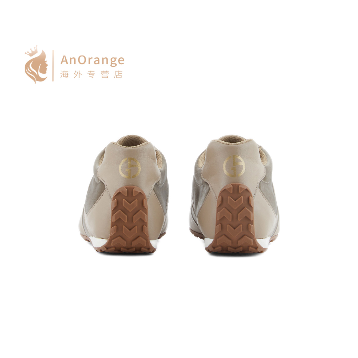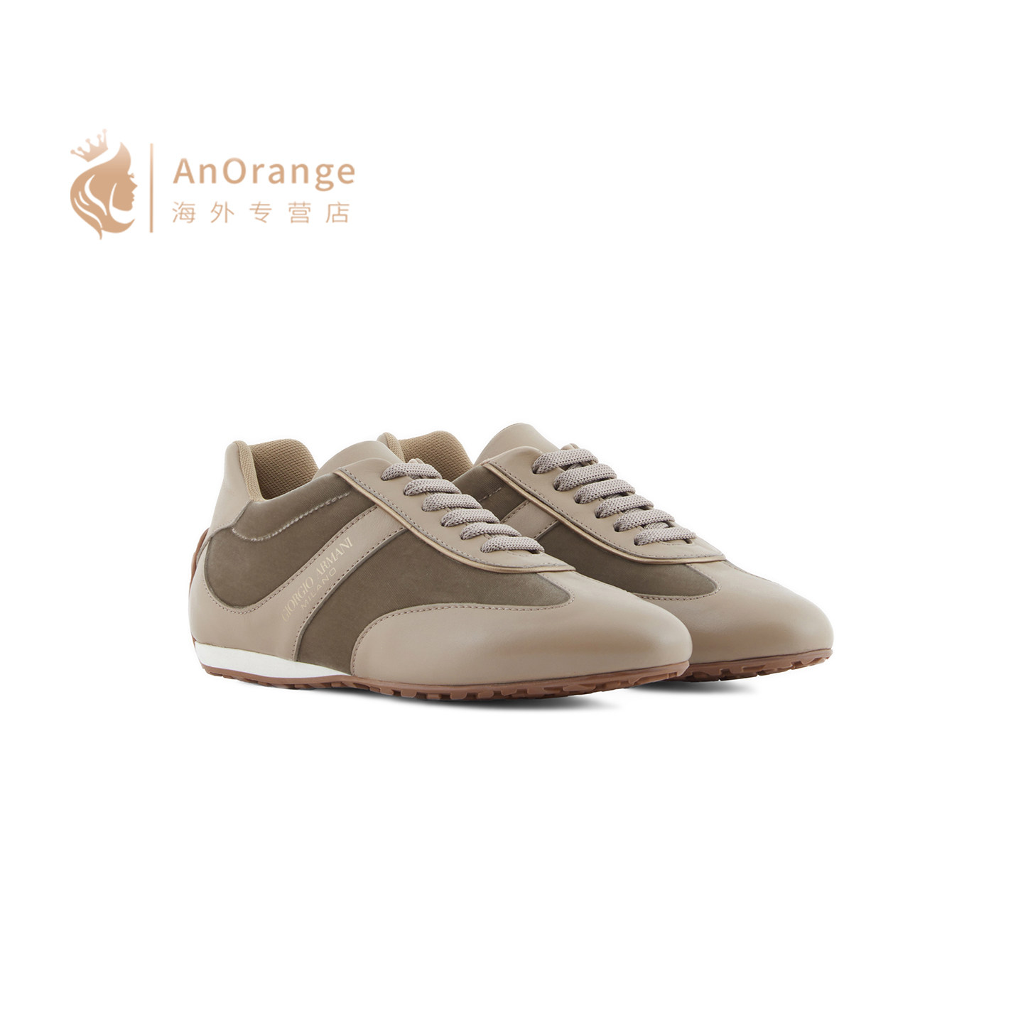 Armani阿玛尼GA女鞋平底鞋2026新款拼色小牛皮天鹅绒系带运动鞋