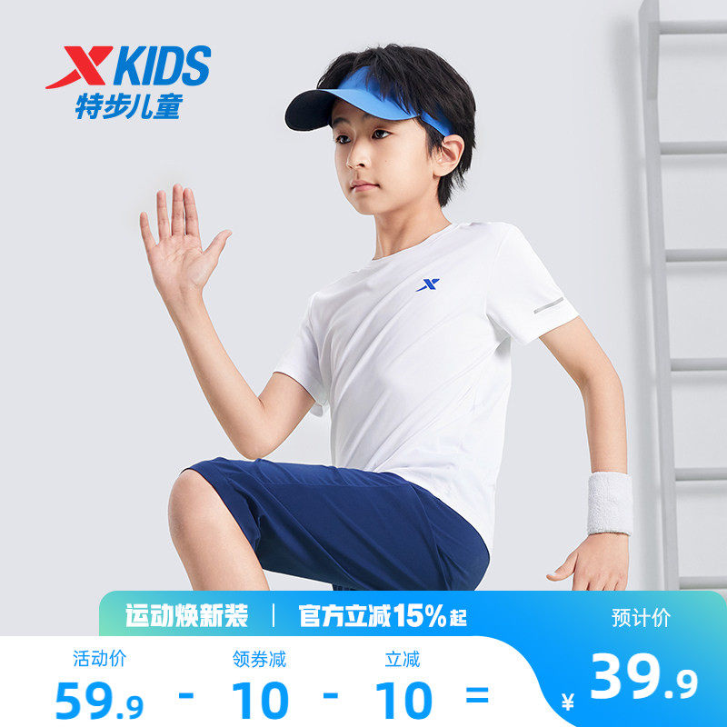 特步童装儿童短袖t恤2026夏季新款中大童速干上衣男女童运动夏装