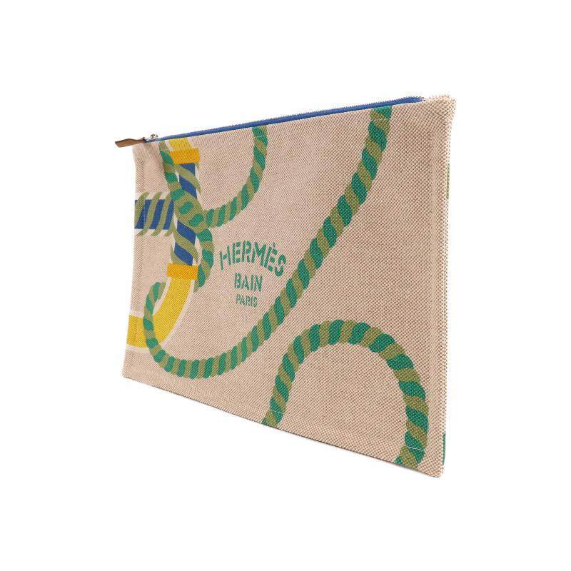 中古Hermes爱马仕女包S级99新Clutch bag手拿包棉手拿包浅褐色