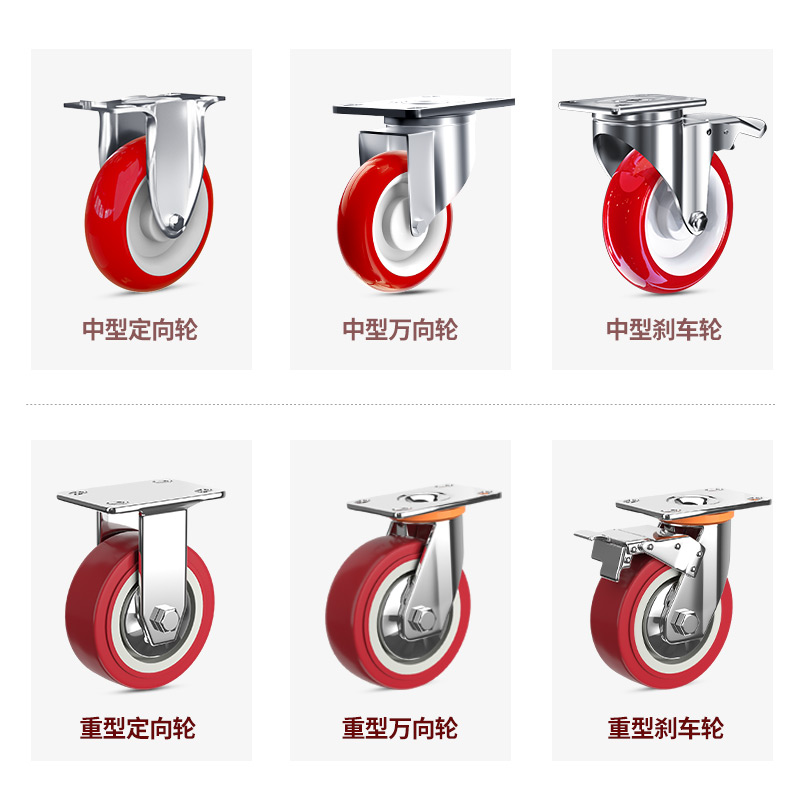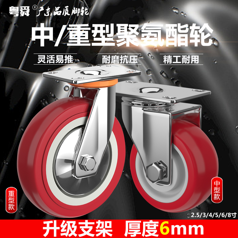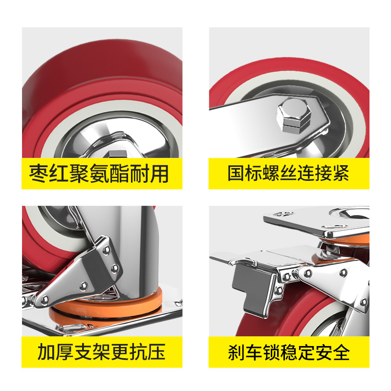 345寸6寸8寸重型万向轮聚氨酯PU脚轮小手推平板车轮子带刹车轱辘