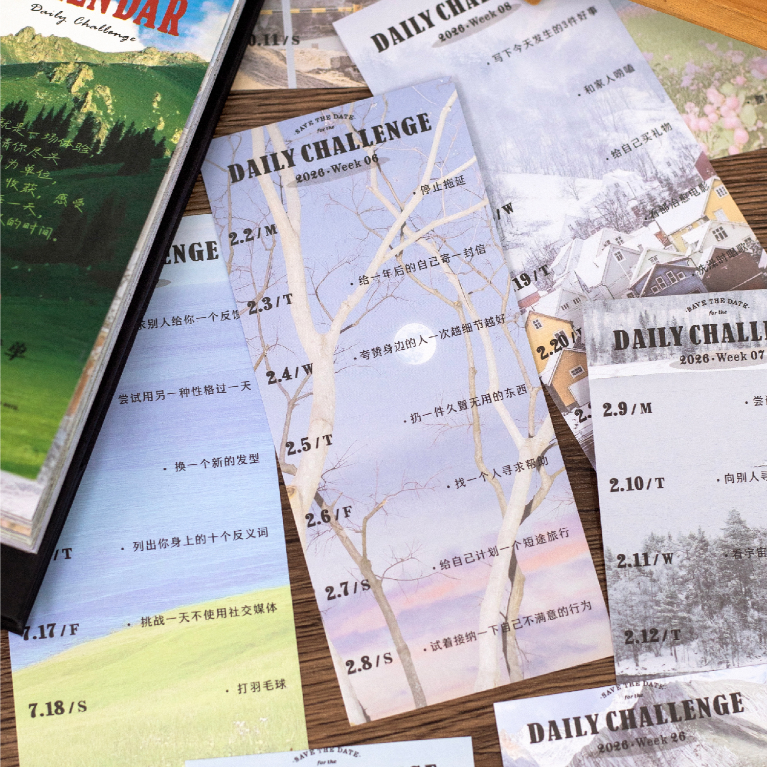 2026年新款人生体验清单日历 高颜值复古文艺风景主题趣味53周互动打卡计划桌面装饰摆件台历