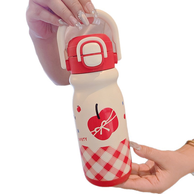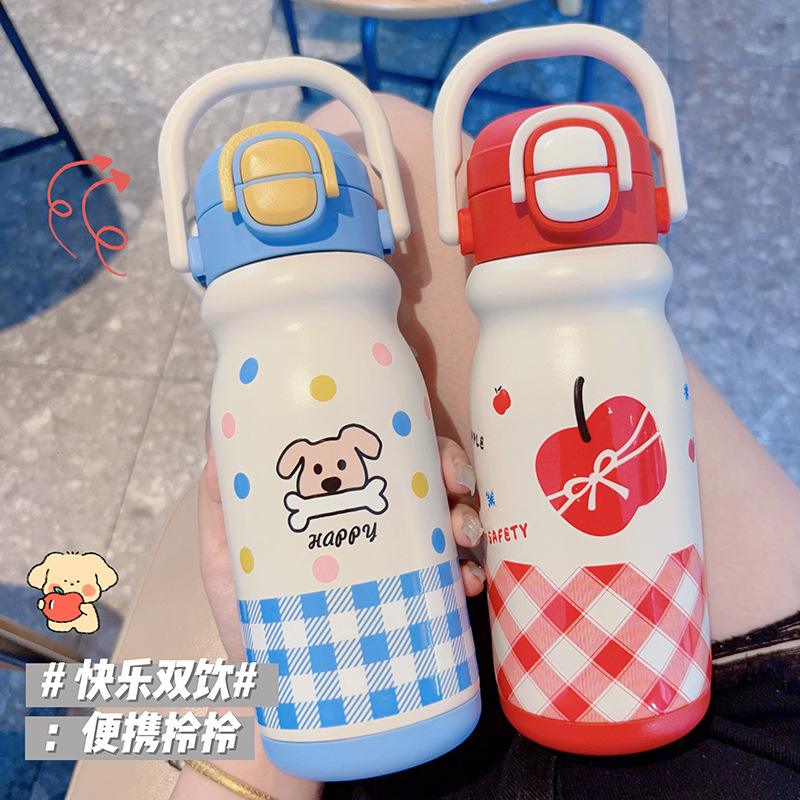 新款学生高颜值陶瓷内胆水杯儿童拎拎壶保温杯可爱双饮吸管杯