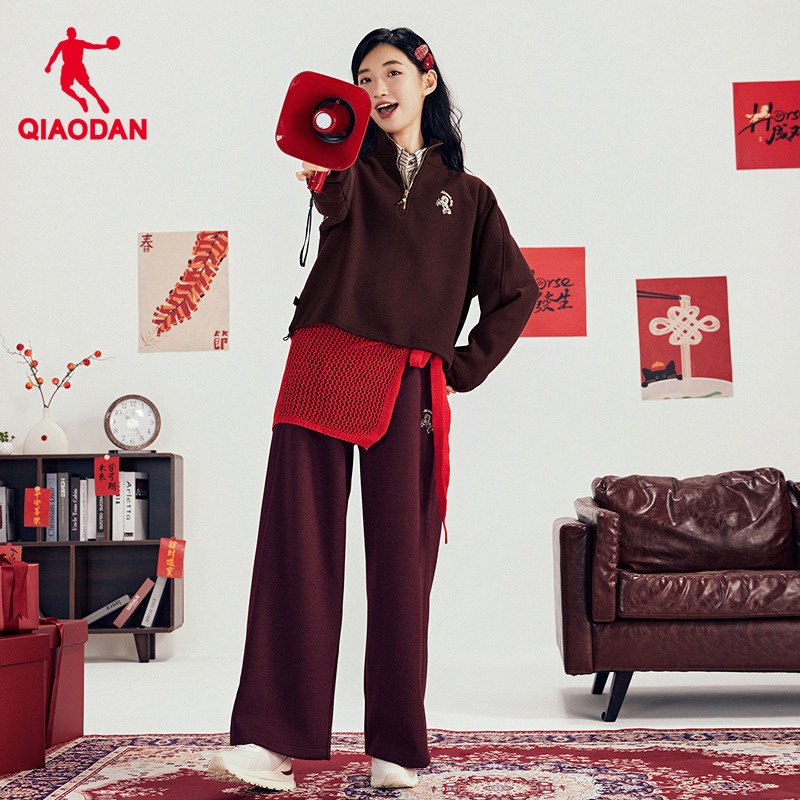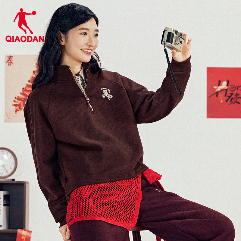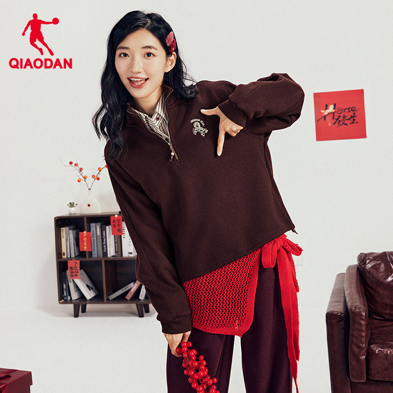 乔丹马上有钱红色卫衣女士2026春季新款商场同款新年本命年套头衫