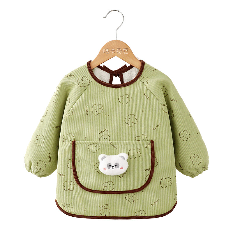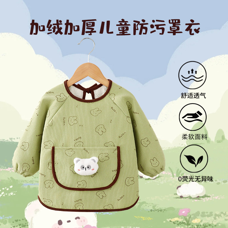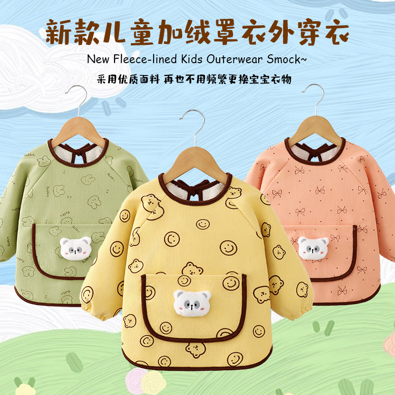 加绒儿童罩衣秋冬季加厚保暖围裙外穿洋气可爱男女宝宝吃饭反穿衣