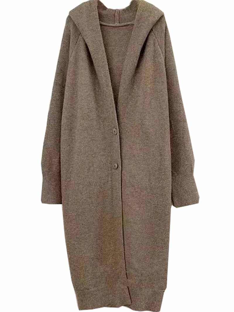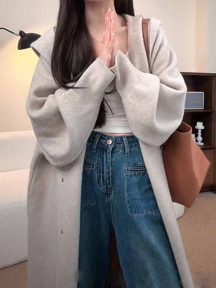 秋冬新连帽毛衣开衫女中长款慵懒风高级感蝙蝠袖针织大衣加厚外套