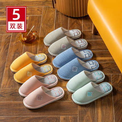 5双棉拖鞋家用秋冬季棉麻厚底防滑男女冬天室内家居2026新款拖鞋