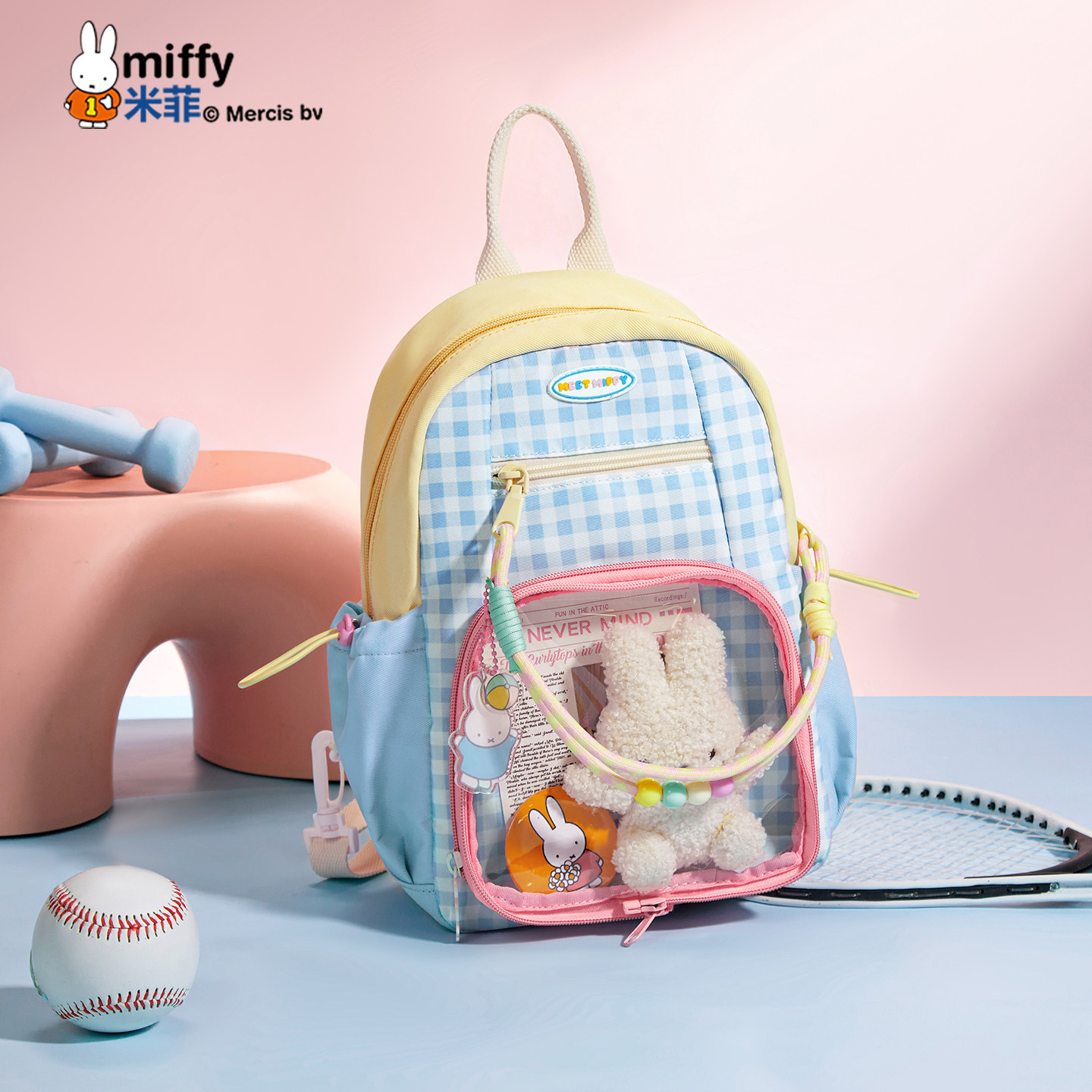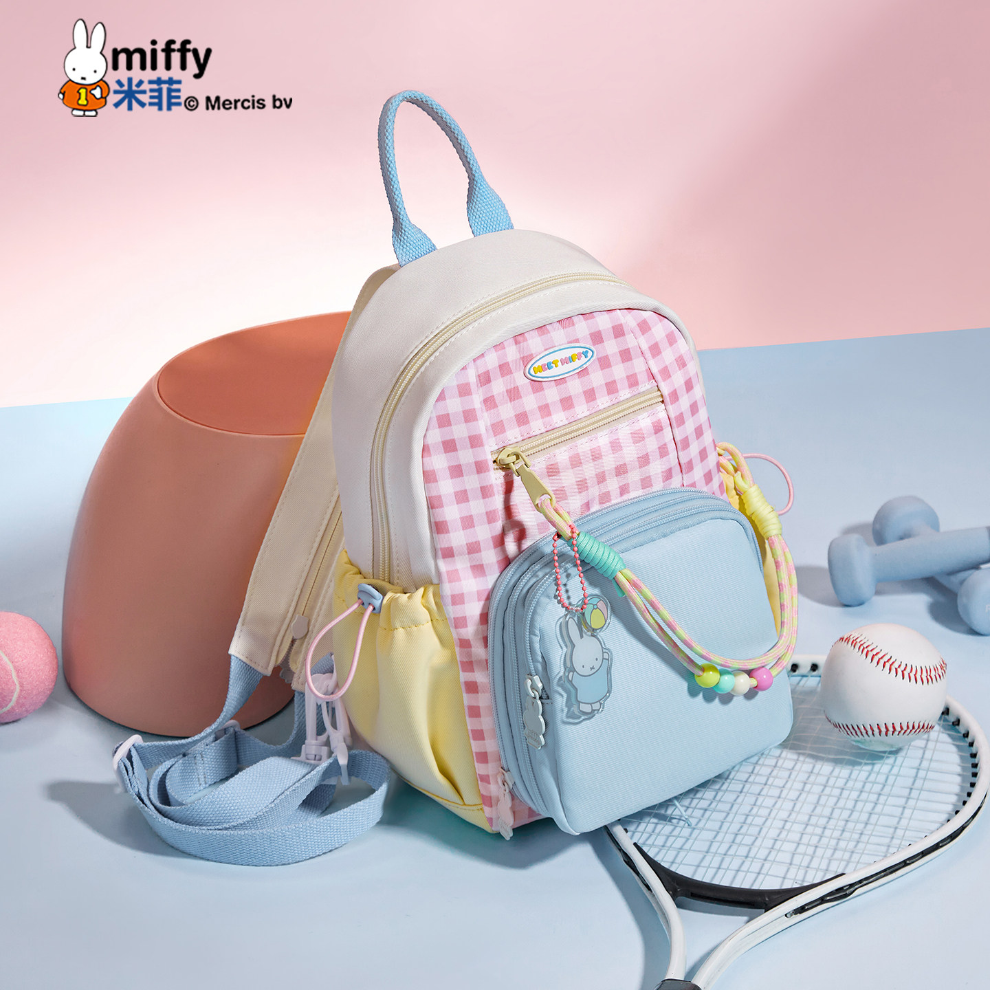 米菲格子撞色轻便儿童双肩包