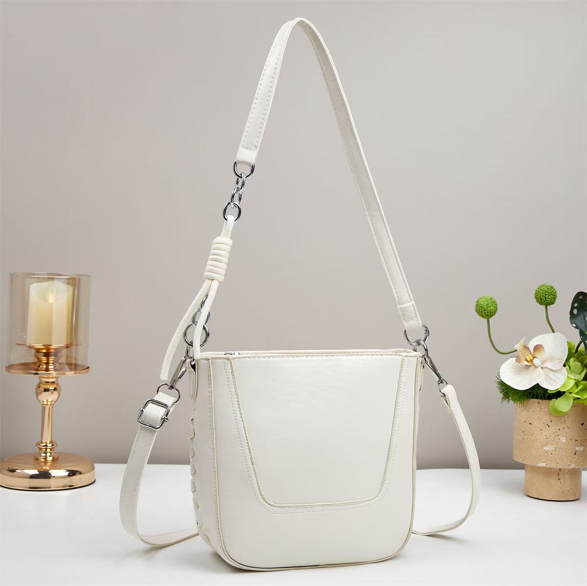 软皮复古风斜挎女高级水桶单肩包