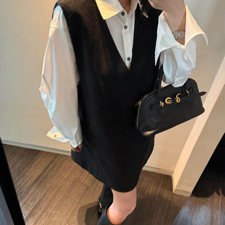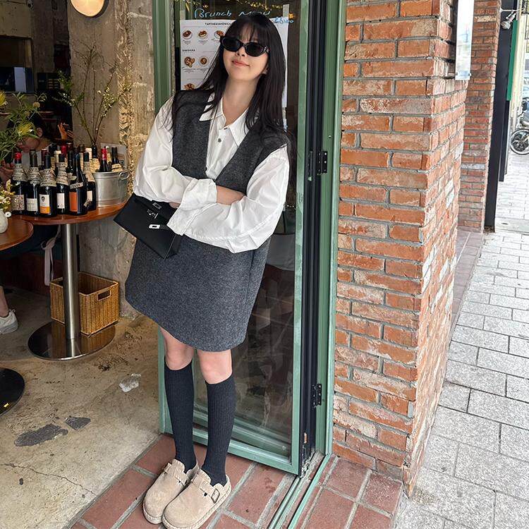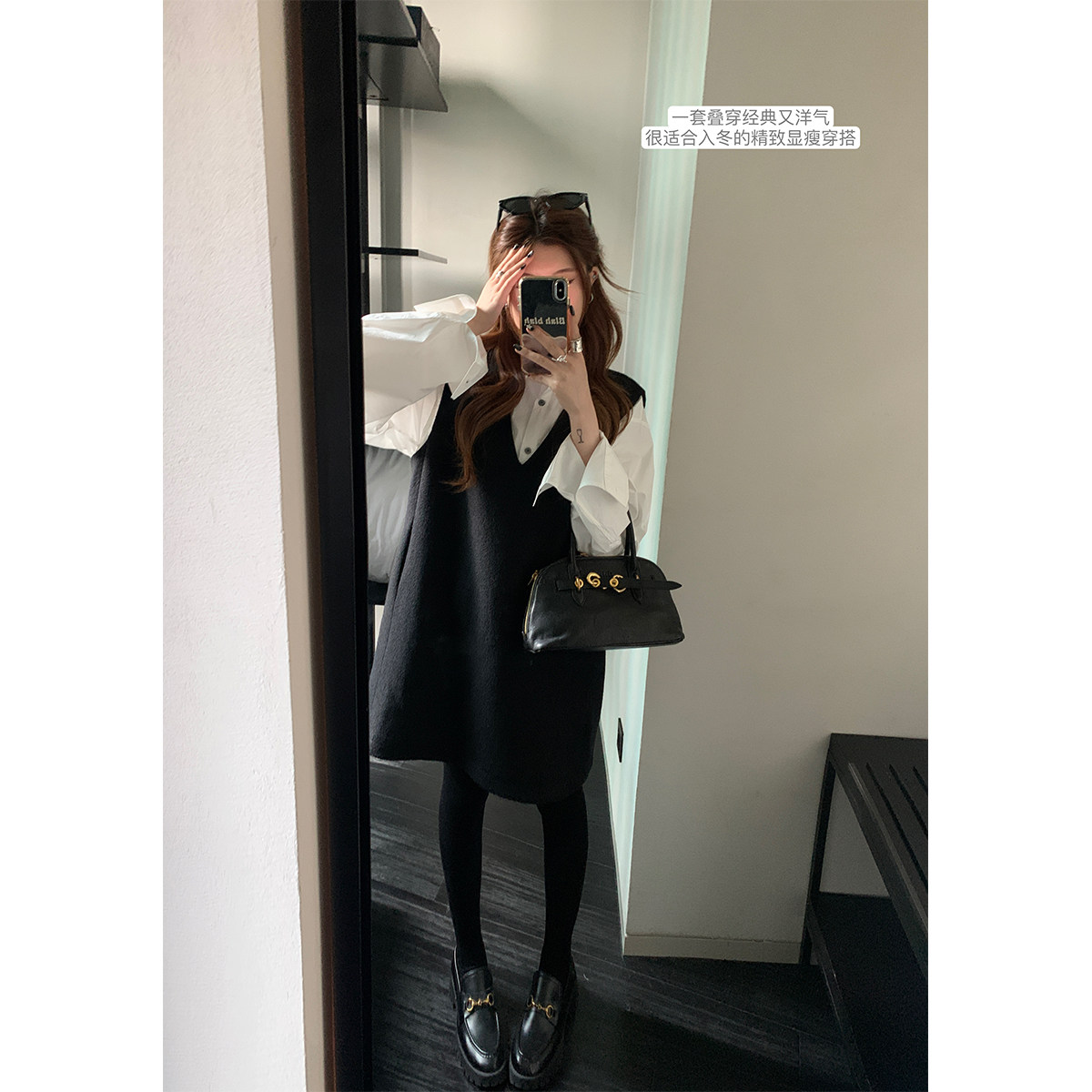 superniniyy 英区留洋学姐乖巧叠穿60%羊毛呢子背心裙宽松白衬衫
