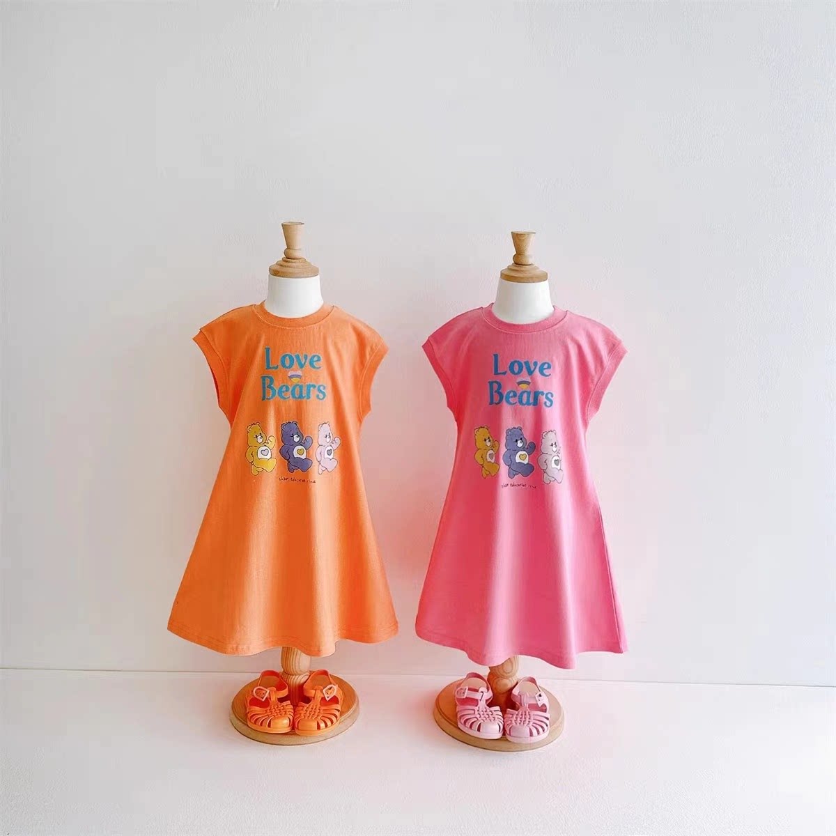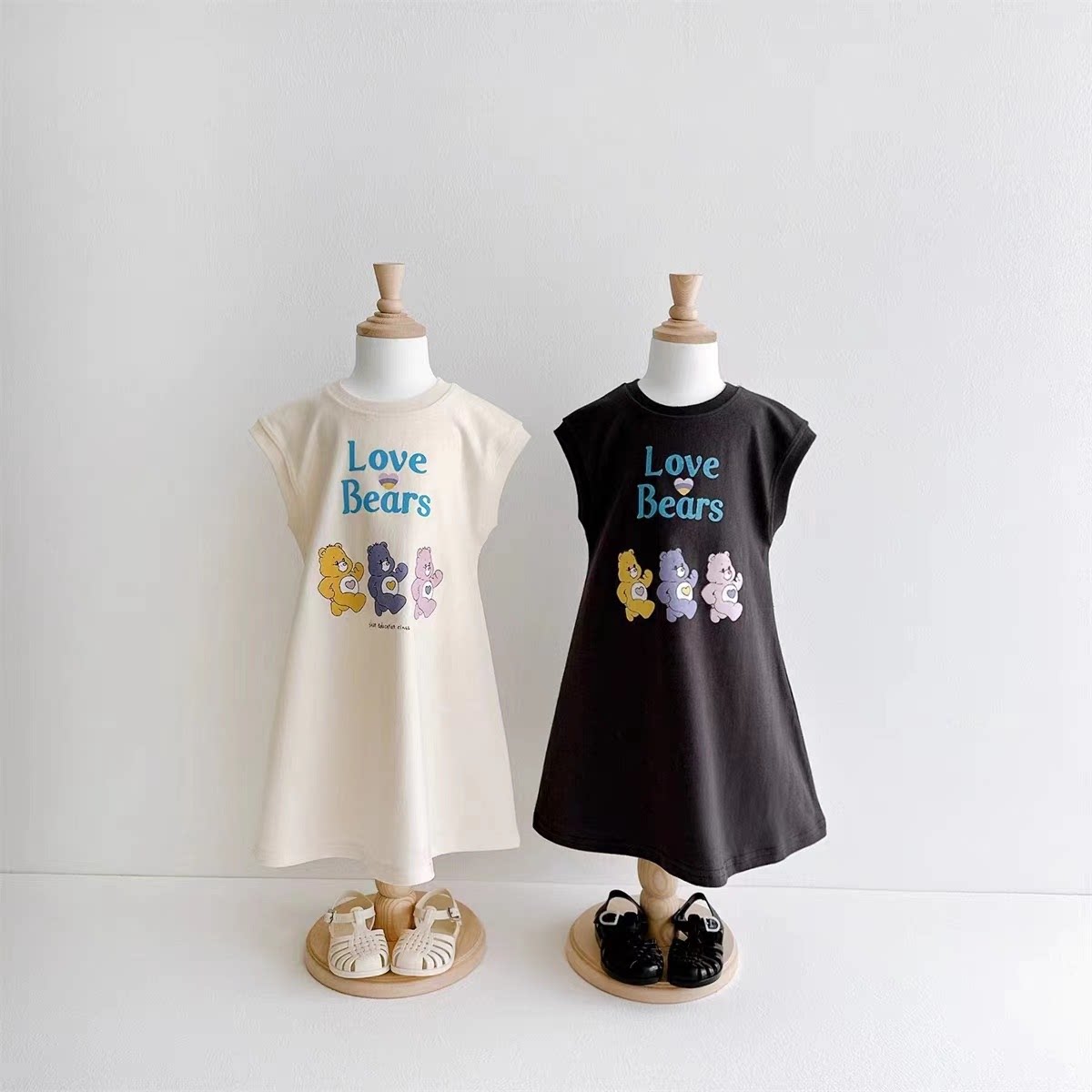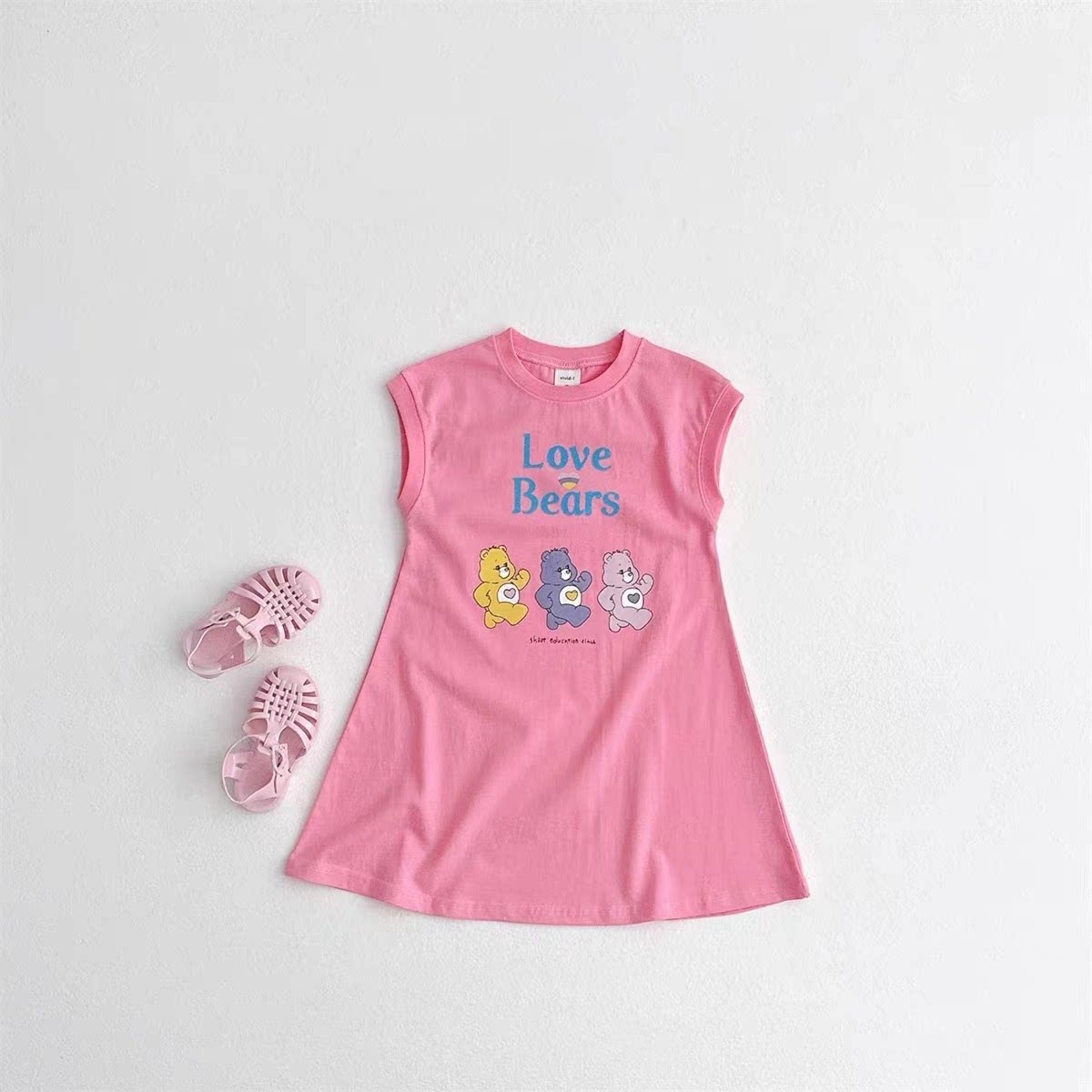 韩国童装23夏VIVID-I女小大童宝薄款小熊无袖背心连衣裙