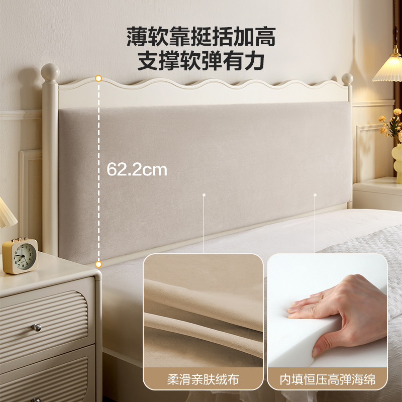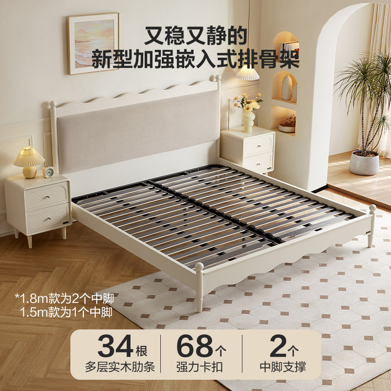 【品牌秒杀】全友家居法式奶油风实木脚床卧室1米8双人软包布艺床