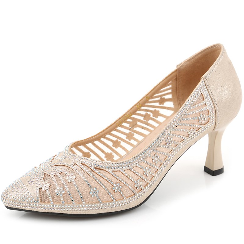 夏季新款真皮高跟鞋细跟尖头镂空网纱女鞋时尚百搭小皮鞋女凉鞋