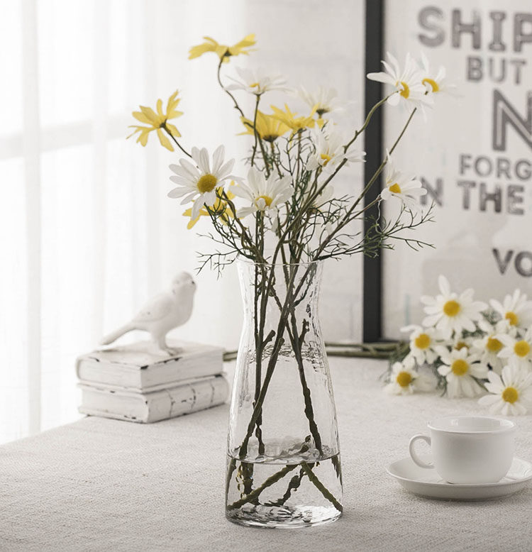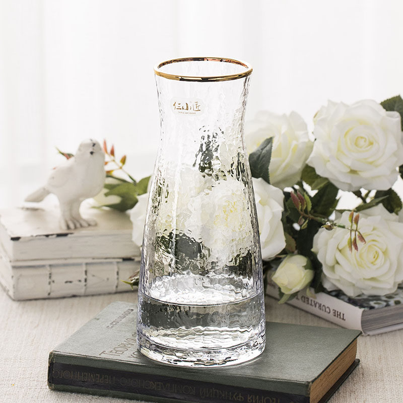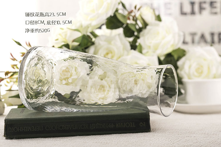 日系锤纹小透明玻璃花瓶简约创意水培插花花器清新客厅干花瓶摆件