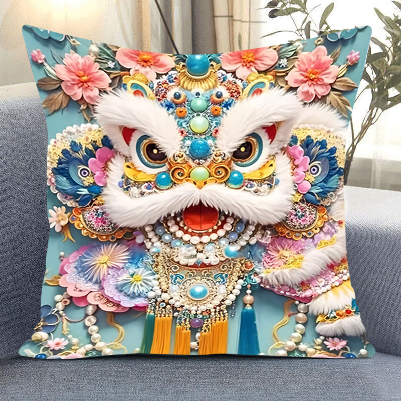 十字绣2025新款线绣中国风国潮醒狮抱枕套家用diy手工年轻人刺绣