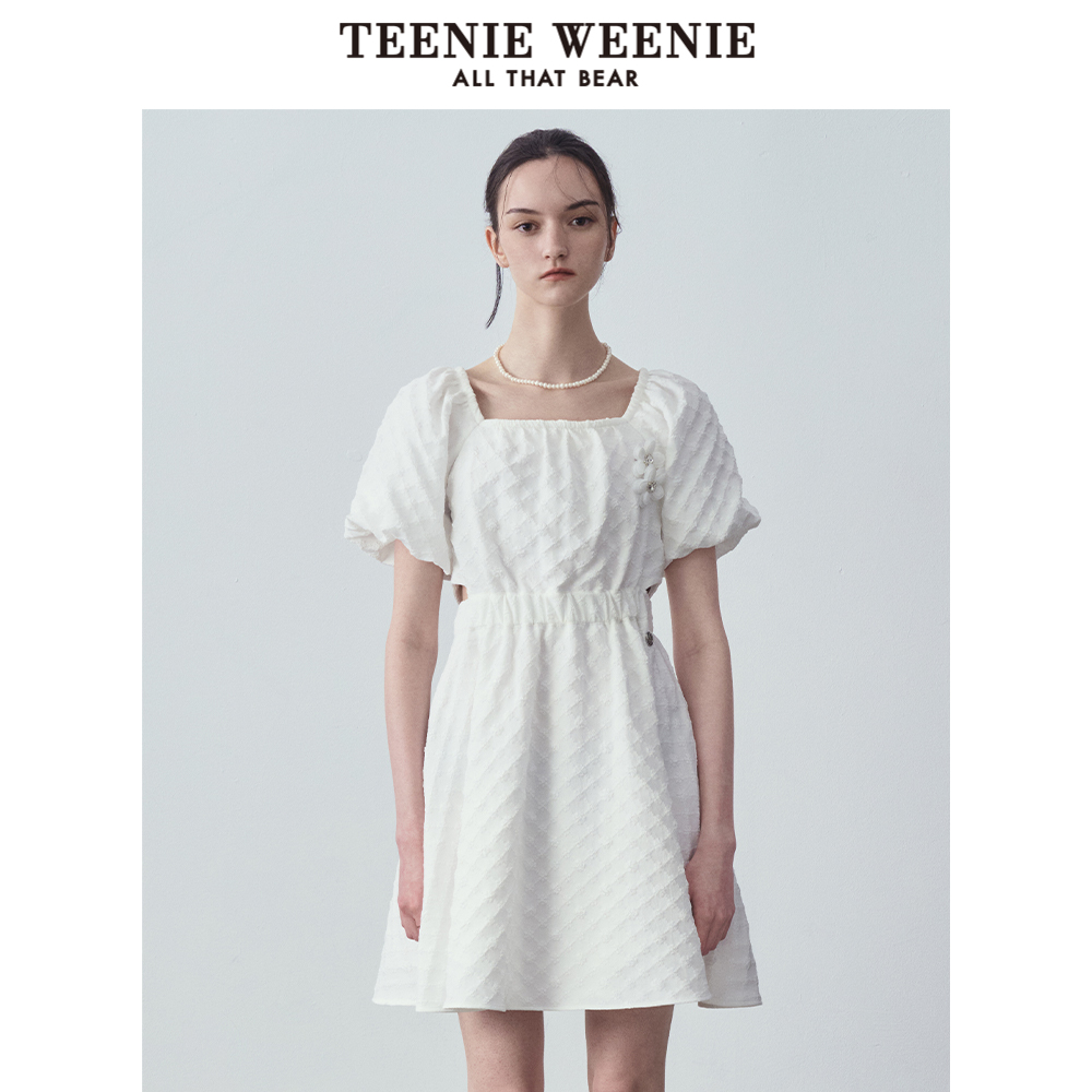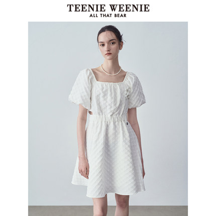 TeenieWeenie小熊奥莱夏新款法式方领气质连衣裙泡泡袖A字裙
