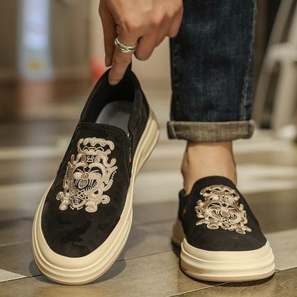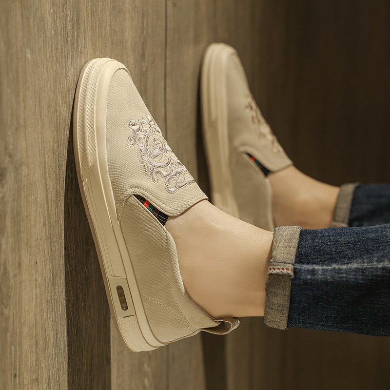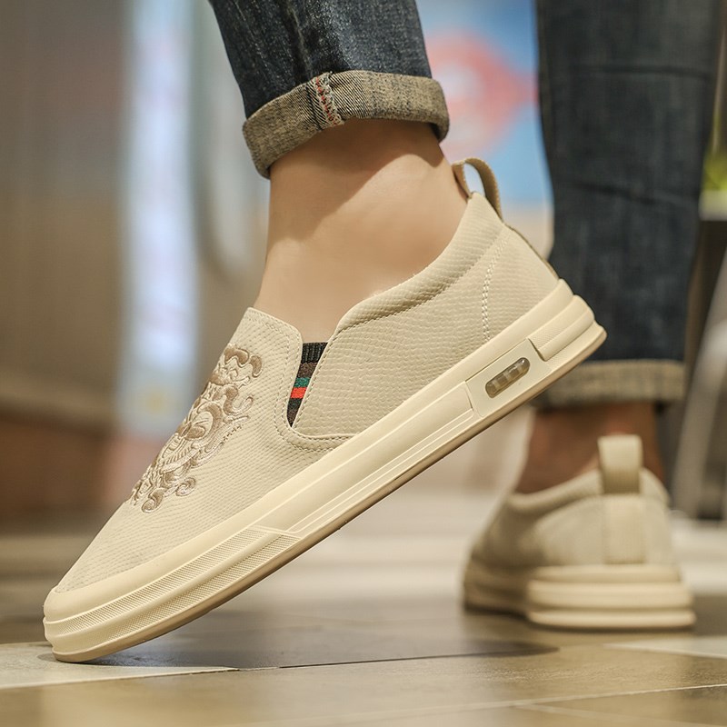 帆布男鞋夏季2025年新款小众工作休闲板鞋一脚蹬春季软底开车布鞋