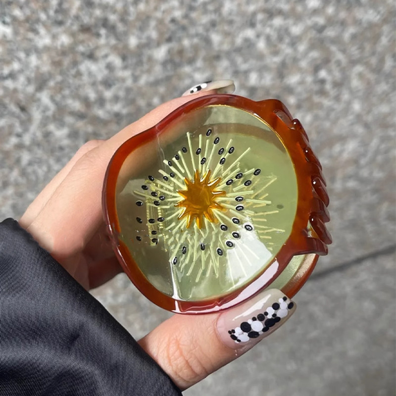 韩系水果系列猕猴桃抓夹小众设计大号奇异果鲨鱼夹后脑勺盘发头饰